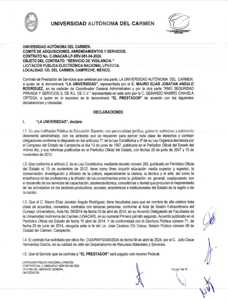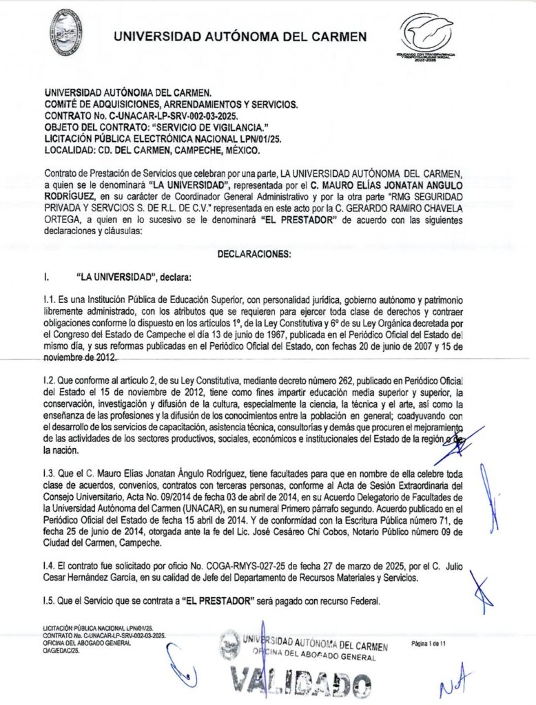 Denuncia al 9933989844…🚩⚠️👮‍♂️ ¡24 MDP en guarros de UNACAR para GERARDO CHAVELA, ex IMP y BAKER HUGHES!; en medio de una crisis anunciada dentro de la Universidad Autónoma del Carmen ( @UNACAR ) que dirige Sandra Martha Laffónt Leal, sin dinero para pagar a sus jubilados los siguientes meses de noviembre y diciembre 2025, Gerardo Ramiro Chavela Ortega, pasó de ser Especialista de Perforación Direccional para el Instituto Mexicano del Petróleo (IMP) con un salario mensual que no rebasaba el medio millón de pesos a ser contratista de la Universidad con dos contratos entre 2024 y lo que va de 2025 por más de 24 millones de pesos provenientes de recursos estatales; el primer contrato que le asignaron para servicio de vigilancia a Gerardo Chavela en la Unacar por medio de su empresa RMG Seguridad Privada y Servicios fue el C-UNACAR-LP-SRV-001-04-2024, como resultado del fallo de la licitación LPN//02/24 por un monto con IVA de 11,224,215.68 pesos, a un plazo del 1 de abril de 2024 al 31 de diciembre de 2025; mientras la rectora escapista de la Unacar que saltó por la ventana para escapar de los jubilados en 2023 y fue grabada (video), Sandra Martha Laffón Leal, declaró este mes que faltan 20 millones de pesos para pagarle a los jubilados universitarios (que cerraron el puente Zacatal en protesta) los pagos correspondientes a noviembre y diciembre, este 26 de marzo el ex funcionario del IMP con su empresa RMG recibió otra vez la adjudicación de la licitación pública LPN/01/25 otra vez para servicio de vigilancia pero ahora por 12,939,894.04 pesos; Gerardo Chavela, luego de ser también coordinador de operaciones de Baker Hughes de México por nueve años en Ciudad del Carmen, Camp, hasta 2020, se metió a trabajar al IMP donde sólo duró un año como conforme a su declaración patrimonial pero no perdió el tiempo, porque desde antes en 2019 abrió la empresa RMG con domicilio fiscal es una simple casita de interés social en Villas de Santa Ana en el número 3, ubicada en la privada San Joaquín (foto); la Unacar asumió la vigilancia de sus instalaciones con sus propios trabajadores hasta mediados de 2016 cuando vio conveniente subrogar este servicio a particulares por intereses políticos, como el contrato que le dieron en 2023 a Tania Estephania Moreno Bulnes el contrato C-UNACAR-LP-SRV-001-06-2023 por 4,268,916.00 pesos, quien antes había buscado ser diputada por el Distrito XX de Campeche primero con la de la coalición @AccionNacional – @MovCiudadanoMX en 2018 y luego en 2021 por el mismo partido político, pero en ambos intentos perdió; atención @Claudiashein @MarcelaVilleg15 @CNE_Mex @SENER_mx @GobiernoMX @FGRmexico @LuzElena_GE @ASF_Mexico  @SCJN @STPS_mx @Tu_IMSS @SEMARNAT_mx @agencia_asea @CENAGAS_mx @IMPetroleo @SATMX @Hacienda_Mexico @BuenGobierno_mx @Centrofcrl #OIC #UIF #OmarReyesColmenares …Zas!!!