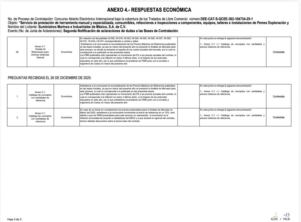 Denuncia al 9933989844…🚩⚠️💰❗️ ¡SUMIMSA: Premia Pemex precios inflados con contrato por 74 MDD!; hasta le modificaron las bases del concurso con PMR´s a modo. @Pemex le asignó el pasado 30 de enero 2026 a Suministros Marinos e Industriales de México (SUMIMSA) propiedad de Jorge Octavio y Gerardo Gustavo Tamayo Sobera, el fallo del concurso DEE-CAT-S-GCEE (todavía cuando estaba Lucy Lozano Rodríguez) 302-104734-25-1 por 74,611,200.69 dólares (unos 1,285,938,965.09 pesos) para servicio de prestación de herramienta manual y especializada, consumibles, refacciones e inspecciones a componentes, equipos, talleres e instalaciones de @Pemex Exploración y Producción (PEP ahora DEE) con plazo hasta el 31 de diciembre de 2028, conforme al modelo de contrato adjunto en las bases. Aunque fue publicado como “concurso abierto” en realidad estuvo dirigido exclusivamente para Sumimsa porque fue la única empresa que participó y ofertó, además fue la única que metió 25 preguntas en las 2 juntas de aclaraciones. Todo esto a pesar de que en febrero 2026 se publicó aquí una lista de “insumos” de fecha 31 de octubre de 2025 con precios inflados muchos por encima del 200% de su valor en el mercado real en perjuicio del erario público por más de 8 millones de pesos, así como los nombres de los responsables en @Pemex de autorizarla, principalmente para bolsas de basura de plástico, trapos, engrapadoras y escobas -solicitud 4304561728- cargado al contrato 643023802 que al parecer no estaba vigente, suscrito entre @Pemex y SUMIMSA. En este disque “concurso” en las últimas preguntas de la segunda junta de aclaraciones, SUMIMSA solicitó a @Pemex “traje a la medida” para que le modificara a su favor los precios máximos de referencia (PMR) en las partidas 3, 4, 12, 16, 21, 22, 32 y 34 del Anexo C-1 (catálogo de conceptos), con la consabida inflada de precios a placer, a lo que la petrolera nacional accedió sin menoscabo. Mismas preguntas de modificación a las bases donde salieron a la luz contratos de arrendamiento que -con mucha discreción- mantiene SUMIMSA con @Pemex y que ¡¡¡se actualizan de forma automática!!! sin licitación de por medio como lo revela la propia empresa en la pregunta técnica 4 donde pide a @Pemex que “acepte una carta compromiso de arrendamiento en la cual se garantice que el participante tendrá a su disposición la instalación propuesta en el Documento DT-4 durante la vigencia del contrato que se derive”, a lo que @Pemex aceptó -también sin chistar- en los términos establecidos en el punto 5.1.3.2 del Anexo D-3 del concurso. El direccionamiento de este procedimiento se mantuvo a favor de SUMIMSA hasta la apertura de propuestas donde ilegalmente @Pemex ocultó el monto económico propuesta por la única participante para entregarle el fallo del contrato en total opacidad. Los hermanos Jorge Octavio y Gerardo Gustavo Tamayo Sobera suman 33 contratos con SUMIMSA y su filial ACCEZA Suministros y Servicios por 16,993,765,912.45 pesos. Por su parte, SUMIMSA suma 23 contratos con este reciente por 16,647,496,238.05 pesos (3 con Sheinbaum/Padilla, 18 con AMLO/Agrónomo, 1 EPN/Treviño y 1 Calderón/Coppel). En cambio ACCEZA Suministros y Servicios tiene 10 contratos (todos con AMLO/Agrónomo) por 346,269,674.40 pesos. atención @Claudiashein @MarcelaVilleg15 @CNE_Mex @SENER_mx @GobiernoMX @FGRmexico @LuzElena_GE @ASF_Mexico  @SCJN @STPS_mx @Tu_IMSS @SEMARNAT_mx @agencia_asea @CENAGAS_mx @IMPetroleo @SATMX @Hacienda_Mexico @BuenGobierno_mx @Centrofcrl #OIC #UIF #OmarReyesColmenares …Zas!!!