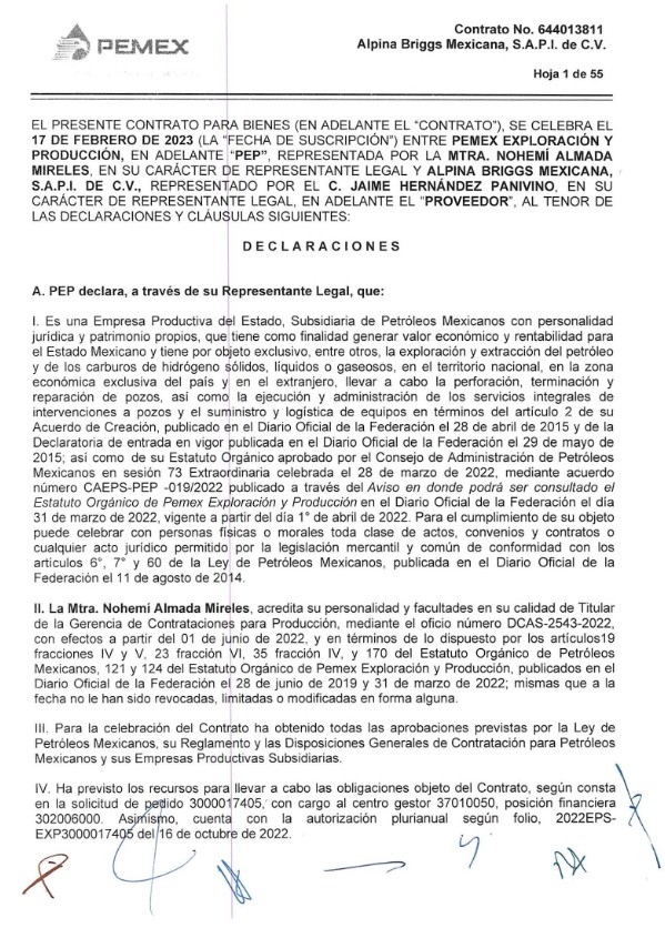 Denuncia al 9933989844… 🚩⚠️ ¡ALPINA BRIGGS MEXICANA: Contrato Pemex por 26 MDP a PANIVINO, ligado a Bahamas Leaks! Jaime Hernández Panivino, quien fue vinculado en la investigación internacional conocida como Bahamas Leaks en 2016, por su participación en estructuras offshore usadas para mover dinero hacia paraísos fiscales producto de contratos previos con @Pemex , recibió un contrato con su empresa Alpina Briggs Mexicana por 26,230,000.00 pesos como resultado del fallo de la licitación DEE-CAT-B-GCEE-401-102421-25-2 para la adquisición de equipos y accesorios para control de contingencias para los Activos de Producción de la SPRN ahora SETRN, y que conforme al modelo de contrato, estará vigente hasta el 31 de diciembre de 2027. En la apertura de propuestas @Pemex ocultó los montos de ALPINA y Grupo MARSAN de México que fue la única competencia. Además durante la segunda ronda de aclaraciones de respuestas a dudas del concurso, ALPINA logró que le modificara @Pemex a su favor conceptos relacionados al Anexo C del concurso toda vez que @Pemex no respondió negativamente a ninguno de los cuestionamientos en las respuestas económicas. El fallo del concurso fue firmado por los funcionarios Mariella Carballo Escribá y Francisca Lucía González Gaytan de la Gerencia de Contrataciones para Exploración y Extracción. Con este nuevo convenio queda demostrado que aunque PANIVINO haya participado en una evasión fiscal conforme a los documentos resultantes de la filtración publicada por el diario alemán Süddeutsche Zeitung, retomado por la revista @proceso y compartido al Consorcio Internacional de Periodistas de Investigación (ICIJ, por sus siglas en inglés) en 2016 sobre los Bahamas Leaks, @Pemex siguió contratándolo -violando la Debida Diligencia del Jurídico- vía su empresa Alpina Briggs Mexicana. En los registros de la base de datos de contratos de @Pemex sólo hay disponible a consulta un contrato más del periodo AMLO/Agrónomo, el 644013811 por un monto de 30,913,913.25 pesos para adquisiciones de equipos y accesorios para control de contingencias ambientales en los Activos de Producción de la Región Norte de PEP ahora DEE, que estuvo vigente del 17 de febrero de 2023 al 31 de diciembre de 2024. Atención @Claudiashein @MarcelaVilleg15 @CNE_Mex @SENER_mx @GobiernoMX @FGRmexico @LuzElena_GE @ASF_Mexico @SCJN @STPS_mx @Tu_IMSS @SEMARNAT_mx @agencia_asea @CENAGAS_mx @IMPetroleo @SATMX @Hacienda_Mexico @BuenGobierno_mx @Centrofcrl #OIC #UIF #OmarReyesColmenares …Zas!!!
