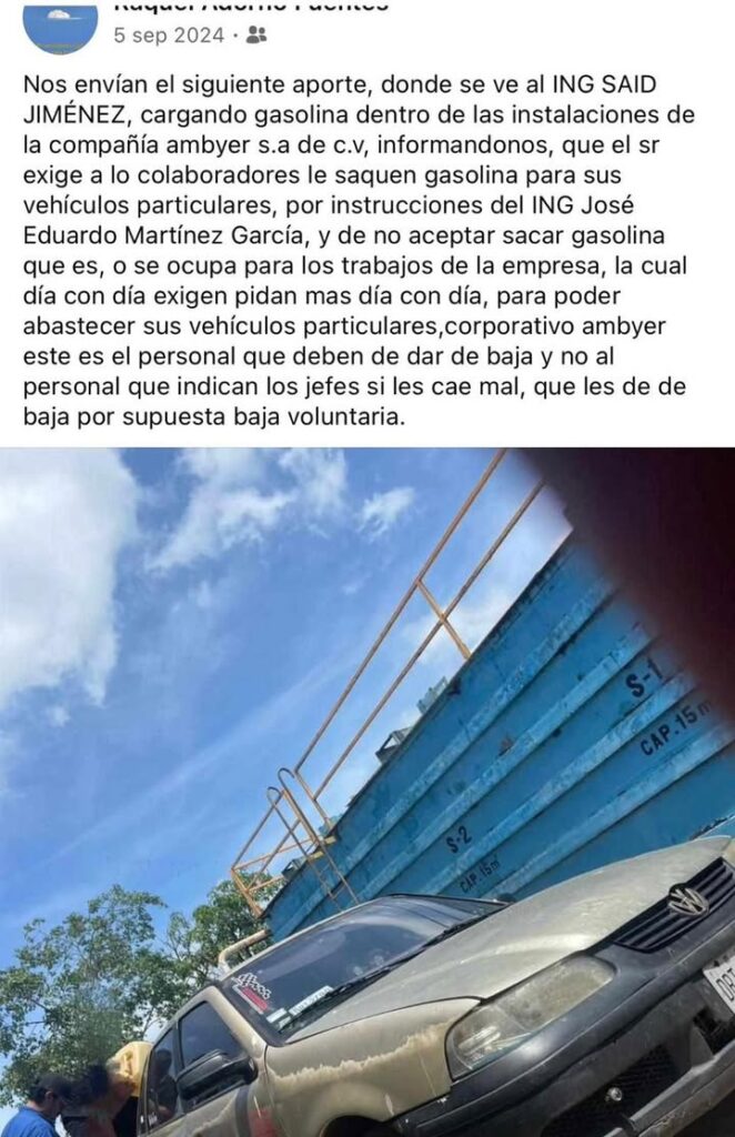 Denuncia al 9933989844… 🚩⚠️‼️¡AMBYER: Pudrición ambiental y laboral de RAFAEL A VILLEGAS FUENTES, antes de CARLOS VIZCARRA de PERFOLAT! Trabajadores cansados de los abusos en la compañía AMBYER S.A. de C.V., situada en Centro, Tabasco, lanzan una serie de acusaciones contundentes que apuntan a una gestión plagada de corrupción y maltrato sistémico. De acuerdo con diversos testimonios y denuncias públicas, la organización, encabezada por su propietario Rafael Alejandro Villegas Fuentes, opera bajo una estructura que vulnera tanto el entorno ecológico como la integridad de sus trabajadores. Denuncias ciudadanas señalan la complicidad de la gerente administrativa Elizabeth Lasso Sánchez, el gerente de planta José Eduardo Martínez García y el encargado de Recursos Humanos Sergio Arturo Fuentes Fuentes, quienes presuntamente han convertido a la empresa en un espacio de impunidad y arbitrariedad. En el ámbito ecológico, las fuentes describen un escenario alarmante donde AMBYER provoca una contaminación severa del aire y del suelo mediante derrames y procesos de desazolve realizados al amparo de la noche para evitar la vigilancia ciudadana. Muchos de estos residuos peligrosos productor de la perforación de pozos si se toma en cuenta que esta planta trataba el material de desecho de la contratista PERFOLAT de México de su anterior dueño Luis Carlos Vizcarra Millán, quien fue secuestrado junto con su esposa María Cruz Campos Frías en Playa del Carmen, Quintana Roo, en noviembre 2024. Investigación que atrajo la Fiscalía General de la República (FGR). Para evadir las consecuencias legales de estos actos, la administración de AMBYER supuestamente recurre a la compra de tierra virgen con el fin de rellenar las áreas afectadas y así manipular los resultados de las inspecciones ambientales de las autoridades. Además, existen señalamientos directos sobre el desvío de recursos y el pago de sobornos a dependencias federales como la Secretaría de Medio Ambiente y Recursos Naturales (Semarnat) y la Agencia de Seguridad, Energía y Ambiente (ASEA), que ahora dirige Andrea González Hernández, buscando asegurar la continuidad de sus operaciones a pesar de las múltiples demandas interpuestas por la comunidad debido a la violación de sus derechos. La situación laboral dentro de la planta es calificada como una forma de explotación moderna, donde los salarios son precarios, no se remuneran las horas extraordinarias y se niegan sistemáticamente las vacaciones, incluso a personal con una antigüedad considerable. Los trabajadores reportan que Martínez García utiliza un tono prepotente y ofensivo, recurriendo a amenazas constantes de despido o de reportar a los empleados con grupos delictivos si no se someten a su voluntad. Por su parte, el contador Fuentes Fuentes es acusado de gestionar liquidaciones injustas basándose en salarios manipulados, mientras que los aumentos de sueldo se otorgan de manera selectiva a personas de confianza bajo engaños a las autoridades correspondientes. El abuso de poder se extiende a prácticas de extorsión y uso indebido de los activos de la empresa, donde trabajadores de confianza, siguiendo órdenes de Martínez García, cobran sobornos de hasta 7 mil pesos a sus compañeros para garantizarles su permanencia en el puesto. También se denuncia que el ingeniero Said Jiménez obliga al personal a extraer gasolina de la compañía para abastecer vehículos particulares y que se les exige cooperación económica obligatoria para sufragar los festejos de cumpleaños de los directivos, bajo amenaza de castigos. En un incidente específico, se relata que el gerente de planta destruyó una unidad nueva de la empresa al conducir en estado de ebriedad y, tras huir inicialmente del lugar, obligó a los empleados a pagar los daños mediante descuentos directos en sus nóminas. Por si fuera poco, las acusaciones adquieren una gravedad mayor al mencionar la presunta participación de la empresa en actividades ilícitas como el huachicol y el blanqueo de materiales. Asimismo, se expone el encubrimiento de un delito de índole sexual ocurrido en una fiesta organizada por Martínez García, donde una licenciada del corporativo habría sido ultrajada por un colaborador cercano al gerente, hecho que fue silenciado internamente. Ante este panorama, los afectados han solicitado la intervención urgente de organismos como la Procuraduría Federal de Protección al Ambiente (Profepa), la Secretaría de Energía (Sener) y diversas autoridades de derechos humanos para frenar la evasión fiscal mediante cambios de razón social y terminar con el clima de violencia y negligencia que impera en Ambyer. Atención @Claudiashein @MarcelaVilleg15 @CNE_Mex @SENER_mx @GobiernoMX @FGRmexico @LuzElena_GE @ASF_Mexico  @SCJN @STPS_mx @Tu_IMSS @SEMARNAT_mx @agencia_asea @CENAGAS_mx @IMPetroleo @SATMX @Hacienda_Mexico @BuenGobierno_mx @Centrofcrl #OIC #UIF #OmarReyesColmenares …Zas!!!