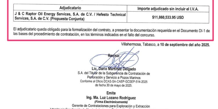 Denuncia al 9933989844… 🚩⚠️‼️¡Batazo a OLMECA DRILLING en Top Drive; ganan J&C RAPTOR/HEFESTO por $219 MDP!; en propuesta conjunta, las empresas J&C Raptor Oil Energy Services/Hefesto Technical Services, representados en diversos contratos por Karina Azuara Llamas y Osvaldo Salvador Hernández, respectivamente, recibieron el fallo de la licitación DEE-CAT-S-GCEE (Lucy Lozano Rodríguez) 302-104579-25-1 para realizar el servicio de mantenimiento y rehabilitación a sistemas impulsores superiores (Top Drive) de la marca GDS, incluyendo sus accesorios, de los equipos de perforación y reparación de pozos de @Pemex Exploración y Producción (PEP ahora DEE) de Ángel Cid Munguía por un monto de 219,319,283.29 pesos; tras este fallo, opaco desde la apertura de propuestas donde @Pemex ocultó los montos con lo que evadió el principio de máxima transparencia señalado en los Artículos 46 y 51 de de la Disposiciones Generales de Contratación, los Artículos 134, 70 y 122 de la Ley General de Transparencia y Acceso a la Información Pública, Olmeca Drilling Solutions and Engineering de Moisés Mendoza fue descartada tras ser reincidente en fraudes, documentados aquí, por haber falsificado una carta de un fabricante estadounidense con complicidad interna, además de la complicidad de las autoridades de @Pemex que habría permitido que esta empresa estuviese gozando de contratos con total impunidad; este hecho fue denunciado, incluso aunque el documento “de respaldo del fabricante” fue desmentido dos veces por el propio fabricante norteamericano; con esa carta, la empresa buscaba demostrar respaldo internacional y así avanzar en esta licitación; Olmeca Drilling ya había sido señalada anteriormente por irregularidades en procesos similares por ejemplo, manipular el año de fabricación de equipos Top Drive en otra licitación en la misma Subdirección de Perforación y Mantenimiento a Pozos (SPMP) a cargo de Federico Chow Sánchez, caso exhibe un patrón posible de corrupción sistemática; por su parte, J&C Raptor habría participado en un pool empresarial encabezado desde 2020 por Carlos Eugenio Lugo Ramírez, hijo del ex petrolero Carlos Lugo Gil, que en ese año ganó contratos con empresas que operó a través de Jorge Mote Reyes, Jorge Alberto Rojo Meza, Adriana Serrano Díaz, Félix Gabriel Girola, Gilberto Flores Hernández o Edgar González Olguín y con las que ganó más de 1,500 millones de pesos; su socio Hefesto Technical Services signó el contrato 653025801 con @Pemex en propuesta conjunta con Construcción y Servicios Integrales SIGMA de Abel Rodríguez Bautista, para ejecutar el servicio de mantenimiento preventivo y correctivo a los componentes, sistemas principales y auxiliares de los equipos terrestres de la marca National Oilwell Varco con capacidad de 1500 HP vigente actualmente del 14 de marzo de 2025 al 31 de diciembre de 2027 por un monto gigantesco de 1,142,105,541.22 pesos; atención @Claudiashein @MarcelaVilleg15 @CNE_Mex @SENER_mx @GobiernoMX @FGRmexico @LuzElena_GE @ASF_Mexico  @SCJN @STPS_mx @Tu_IMSS @SEMARNAT_mx @agencia_asea @CENAGAS_mx @IMPetroleo @SATMX @Hacienda_Mexico @BuenGobierno_mx @Centrofcrl #OIC #UIF #OmarReyesColmenares …Zas!!!