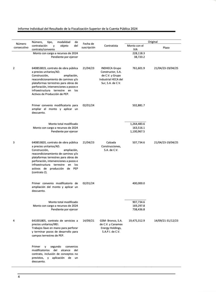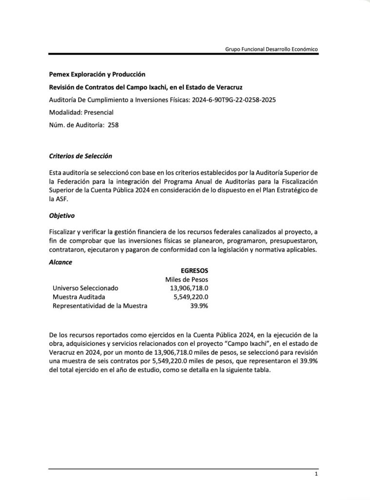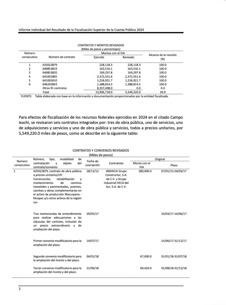 • ¡CAMPO IXACHI: INDEBIDAS AMPLIACIONES A GSM-CALZADA-SLB-TAMSA DE 5,549 A 13,906 MDP (+ 150%) Y SOLO EJERCIERON EL 39.9%, DETECTÓ ASF 2024!