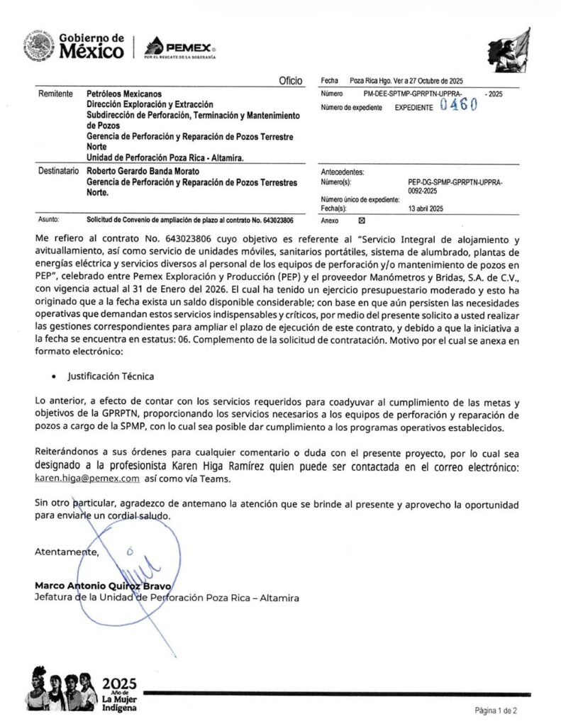 Denuncia al 9933989844… 🚩⚠️ 💸 ¡CÉSAR RUIZ MORTEO/Pemex truena contratos con monto para sacar licis a modo!; herencia de la mafia de Héctor Osorio Herrera, ex gerente de Servicios de Perforación e Intervenciones a Pozos (GSPIP), y Carlos Rangel Hernández, ex subdirector de Perforación y Mantenimiento a Pozos (SPMP), en la nueva administración de @Pemex , es tronar la ampliación en tiempo a contratos que todavía tienen mucho monto por ejercer para sacar licitaciones a modo que pasan por José Humberto Curmina López, a través de César Ruiz Morteo, enlace Terrestre del Grupo Multidisciplinario de Gestión de Recursos y Servicios, y otros como Alberto Gelasio Ruiz y Cosme Andrade Hernández; por ejemplo, hay contratos que terminan este 31 de enero del 2026 y tienen mucho monto por ejercer y no los quiere ampliar en tiempo para sacar nuevos contratos y favorecer a compañías que se ponen a modo por un %; por ende solicitan nuevas bases cuando todavía queda mucho monto en los contratos vigentes; o sea quieren forzar para sacar nuevas licitaciones; como el caso del contrato 6430238060 y para diversos servicios en pozos; atención @Claudiashein @MarcelaVilleg15 @CNE_Mex @SENER_mx @GobiernoMX @FGRmexico @LuzElena_GE @ASF_Mexico  @SCJN @STPS_mx @Tu_IMSS @SEMARNAT_mx @agencia_asea @CENAGAS_mx @IMPetroleo @SATMX @Hacienda_Mexico @BuenGobierno_mx @Centrofcrl #OIC #UIF #OmarReyesColmenares …Zas!!!