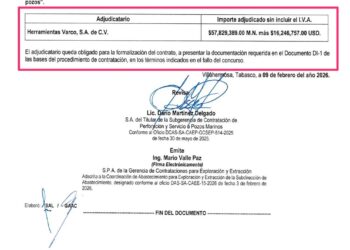 El proveedor fue la empresa Unicornio Proveedora Industrial cuyo contrato expiraba el 31 de diciembre de 2009 con un importe máximo de $29´732,500.0 millones de dólares (mdd) y un mínimo de $11´960,850.00 mdd y un plazo de 1338 días…