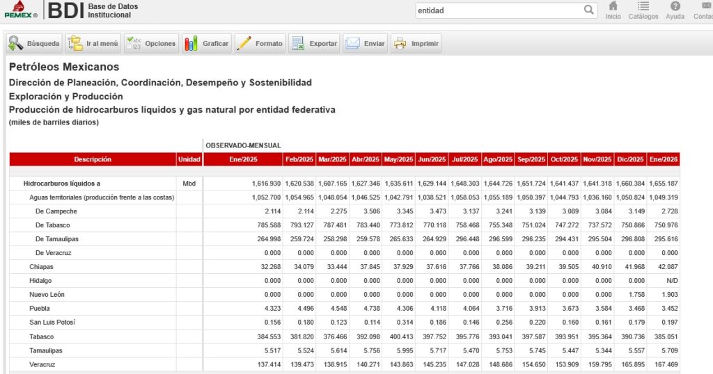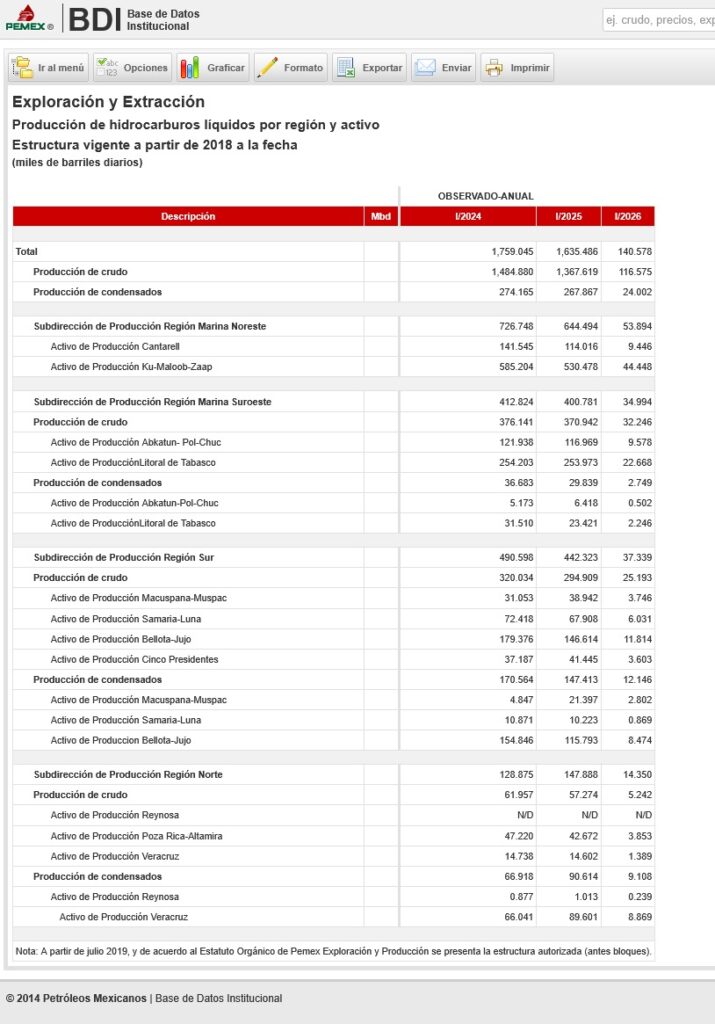 Denuncia al 9933989844… 🚩⚠️‼️¡Confirmado, Pemex degrada a Campeche como productor petrolero; encumbra a Tabasco al primer lugar! Campeche se desploma en la lista, produce el 0.1% del total de crudo nacional extraído en enero de 2026 de un total de 1 millón 655 mbd. En Ciudad del Carmen se deprime la economía y aumenta el cierre de negocios. Tabasco con el 68% de la extracción de hidrocarburos se convierte en el epicentro de la producción petrolera de México: Pemex BDI. Cae producción petrolera nacional 7.55% de 2024 a 2025. Después de una controversia que causó la eliminación de Campeche de las listas de producción petrolera en el sistema de la Base de Datos Institucional (BDI) de @Pemex , donde incluso autoridades estatales y diputados locales de ese estado intentaron aclarar el asunto, ahora se revela en otro listado institucional que con una producción de apenas 2.7 mil barriles de crudo diarios (mbd) en enero de 2026 y un promedio de 2.9 mbd en 2025, Campeche fue degradado, pasó de ser el principal estado productor de petróleo de México a estar en los últimos lugares de extracción de crudo con apenas el 0.165% de la producción nacional de ese mes que fue de 1,655 mbd. Incluso fue superado por Puebla y sus 459 pozos activos en los municipios de Xicotepec, Jalpan y Tlacuilotepec que registraron una producción para esa entidad en enero 2026 de 3.4 mbd y un promedio anual para 2025 de 4 mbd. La caída de Campeche como estado productor principal de petróleo, junto al impago de @Pemex a los proveedores petroleros afectó muy duro en la economía principalmente a Ciudad del Carmen, donde aumentaron los cierres de negocios desde restaurantes hasta agencias automotrices. Conforme a los números oficiales, Campeche fue recategorizado como parte del desglosado del apartado “Aguas territoriales” -ó crudo marino- dentro de la lista de “Producción de hidrocarburos líquidos y gas natural por entidad federativa” donde también aparecen Tabasco, Tamaulipas y Veracruz, este último en ceros. Sin embargo, para enero de 2026 en este desglose de las “aguas territoriales”, Tabasco generó 750.9 mbd, y Tamaulipas 295.6 mbd. Y a diferencia de Campeche, Tabasco y Tamaulipas sí aparecen independientes fuera del desglose de aguas territoriales como estados productores donde la producción de cada uno, más la producción de aguas territoriales, suman en Tabasco 1,136 mbd y en Tamaulipas con 301.3 mbd. Veracruz también como estado productor -sin producción de aguas territoriales- superó a Campeche con 167.4 mbd. La producción de Tabasco ahora representa el 68.63% de todo el petróleo que se extrajo en México en enero de 2026 y, con estos ajustes del BDI de @Pemex , la entidad se colocó a la cabeza sobre la producción de 2025 también. Además, la producción de hidrocarburos de @Pemex de enero 2025 a enero 2026 se mantuvo estable en torno a 1,650 mbd, con un ligero crecimiento impulsado de 2.37% principalmente por el segmento de crudo terrestre que en conjunto suman 38.3 mbd adicionales de incremento, donde el dominio de Tabasco se impuso para compensar un breve declive que hubo especialmente en aguas someras (aguas territoriales) de -0.32% por 3.4 mbd. Y finalmente en comparativa de la producción de los años 2024 con 1,759 mbd y 2025 con 1,635 mbd, la producción cayó 7.55% que coincide con el periodo en que @Pemex incremento el déficit de pagos de estimaciones sus proveedores nacionales y extranjeros. Esta degradación en la categoría de estado productor, sumado a la falta de pago de proveedores de Pemex en Ciudad del Carmen sepultó la frágil y dependientes economía de la isla, donde 8 negocios importantes han bajado sus cortinas como son los restaurantes Rodizio, China House, Marea, Casa Briceño, El Rincón Jarocho, A Takear Plaza Lagos y Toks en su sucursal de Plaza Real; además la falta de circulante y deterioro del poder adquisitivo se reafirmó hace unos días con el cierre de la agencia automotriz Honda del Golfo que le daba empleo a más de 50 personas directamente, entre otros varios. Atención @Claudiashein @MarcelaVilleg15 @CNE_Mex @SENER_mx @GobiernoMX @FGRmexico @LuzElena_GE @ASF_Mexico @SCJN @STPS_mx @Tu_IMSS @SEMARNAT_mx @agencia_asea @CENAGAS_mx @IMPetroleo @SATMX @Hacienda_Mexico @BuenGobierno_mx @Centrofcrl #OIC #UIF #OmarReyesColmenares …Zas!!!