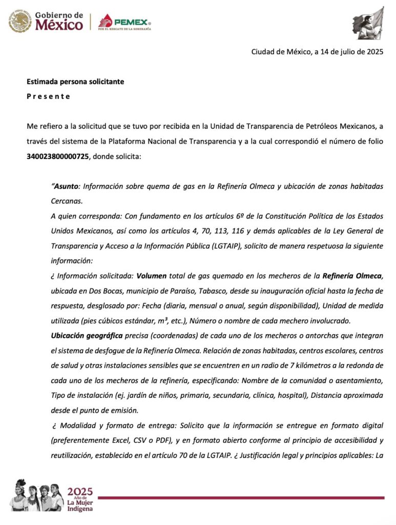 Denuncia al 9933989844… 🚩⚠️🔥🏭‼️¡Denuncia Formal VS Gigantesco Quemador de Refinería Olmeca; Pemex reserva la info!; la Agencia de Seguridad, Energía y Ambiente (ASEA) de Armando Ocampo Zambrano recibió una denuncia formal por hechos de contaminación atmosférica y riesgo operativo atribuibles a la actividad del quemador principal (torre de desfogue) de la refinería Olmeca, Paraíso, Tabasco, que fue proyectada para una capacidad de procesamiento de 340 mil barriles diarios (Mbd) de crudo, pero su producción real ha ido aumentando gradualmente siendo que a finales de 2025 reportó que estaba procesando alrededor de 270 Mbd, según cifras de @Pemex ; el gigantesco quemador, presumido por @rocionahle , ex secretaria de Energía (Sener) y ex encargada de la construcción de la refinería Olmeca, mide 182 metros pero con la campana en la parte superior rebasa los 200 metros que ha causado alarma entre la población aledaña que se vino a sumar a cientos de quemadores que tiene instalados @Pemex en sus diferentes activos en Tabasco solamente, datado en este espacio; el escrito fue firmado por un habitante afectado y licenciado en derecho, quien demandó intervención urgente con base en la Ley General del Equilibrio Ecológico y la Protección al Ambiente, así como en el derecho constitucional de petición; la queja, consignada con el folio PROM-00807 bajo el asunto “Denuncia por hechos de contaminación y riesgo operativo en la refinería Olmeca, Dos Bocas”, señala que el complejo del Sistema Nacional de Refinación (SNR) mantiene una quema continua de gas flare (quema de antorcha) que estaría generando una flama de gran altura visible día y noche, acompañada de humo, olores fuertes, ruido constante y calor irradiado a varios metros a la redonda afectado a la población aledaña; según el documento, el fenómeno impacta directamente a la población de Villa Puerto Ceiba y otras comunidades cercanas, entre ellas Petrolera, Torno Largo, La Madrid, Puerto Ceiba Carrizal y Las Palmas; el denunciante sostiene que esta actividad estaría produciendo emisiones contaminantes con afectaciones respiratorias, alteraciones nerviosas, trastornos del sueño y problemas psicológicos en habitantes expuestos al ruido permanente; también afirma que la operación podría estar provocando lluvia ácida o residuos corrosivos, con daños visibles en techumbres de lámina y pintura de vehículos; el señalado riesgo operativo incluye la percepción comunitaria de posible explosión o accidente mayor, ya que la antorcha estaría activa de manera continua y sin información pública clara sobre su justificación técnica que -por cierto- información que fue reservada por 5 años según una respuesta de la Unidad de Transparencia @Pemex ante una solicitud formal de esta medio; además, el escrito denuncia ante la ASEA detalla que la quema constante superaría los límites establecidos por la regulación ambiental y energética, que según el denunciante permite un máximo de 72 horas sin justificación técnica; también se advierte que la cercanía poblacional no respetaría distancias mínimas de seguridad requeridas por la normativa, que fija 60 metros entre instalaciones industriales y 500 metros cuando hay presencia de viviendas; el expositor sostiene que la refinería tendría la obligación de controlar emisiones, proteger la salud de la población y cumplir con las medidas estipuladas en su Estudio de Impacto Ambiental; el documento exige a la ASEA realizar una inspección inmediata para verificar si la planta está operando dentro de los límites ambientales y de seguridad industrial, así como para determinar el volumen de gas quemado y la justificación técnica de estas emisiones; también solicita un análisis actualizado de calidad del aire, evaluación de riesgo sanitario, medidas urgentes de mitigación y acceso público al Estudio de Impacto Ambiental aprobado; pide información sobre el responsable operativo de la refinería dentro de Pemex y documentación que lo acredite, en este caso el gerente Julio César Aguilar Benítez; la denuncia incluye la referencia a videos anexos en el sistema oficial, donde presuntamente se aprecia la magnitud de la flama y la caída de residuos; el señalamiento adquiere relevancia adicional por el contexto industrial global: en refinerías de Estados Unidos, India, Brasil, Australia, Italia, Arabia Saudita y Corea del Sur, el manejo del gas residual se ha orientado hacia la recuperación energética en lugar de la quema a cielo abierto; instalaciones en Baytown, Pascagoula, Martínez, Ponca City, Jamnagar, Ras Tanura o REPLAN han implementado sistemas FGRU para reutilizar el gas como combustible, electricidad, vapor, hidrógeno o petroquímicos, logrando reducciones sustanciales de emisiones contaminantes y ahorros energéticos significativos; según análisis técnicos comparativos, estas tecnologías son replicables en México, especialmente en refinerías como La Olmeca, donde sería viable integrar cogeneración, petroquímica y recuperación de hidrocarburos para evitar que los residuos terminen en antorcha; el caso queda ahora en manos de ASEA, cuya respuesta determinará si existe incumplimiento normativo en materia ambiental y de seguridad industrial, si la actividad de quema está técnicamente justificada y si la refinería opera dentro de parámetros legales; atención @Claudiashein @MarcelaVilleg15 @CNE_Mex @SENER_mx @GobiernoMX @FGRmexico @LuzElena_GE @ASF_Mexico @SCJN @STPS_mx @Tu_IMSS @SEMARNAT_mx @agencia_asea @CENAGAS_mx @IMPetroleo @SATMX @Hacienda_Mexico @BuenGobierno_mx @Centrofcrl #OIC #UIF #OmarReyesColmenares …Zas!!!