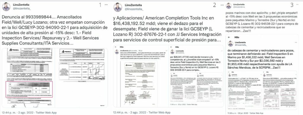 Denuncia al 9933989844… Amacollados Field/Well/Lucy Lozano; otra vez empatan corrupción en la lici GCSEYP-302-94090-22-1 para adquisición de unidades de alta presión al -15% desc: 1.- Field Inspection Services/ Repsurvey y 2.- Well Services Supplies Consultants/ITA Servicios y Aplicaciones/ American Completion Tools Inc en $16,438,192.52 mdd; viene el dedazo para el desempate; Field viene de ganar la lici GCSEYP (L Lozano R) 302-87676-22-1 con JJ Services Integración para servicios de control superficial de presión para pozos marinos con doc apócrifa; y del ¡¡triple empate!! al -15% desc con Well en las 3 propuestas económicas para paquetes Marino y Terrestre (Sur y Norte) en lici GCSEYP (L Lozano R) 302-94538-22-1 para compra de cabezas de cementar y recirculadores que se repartieron…Zas!!!