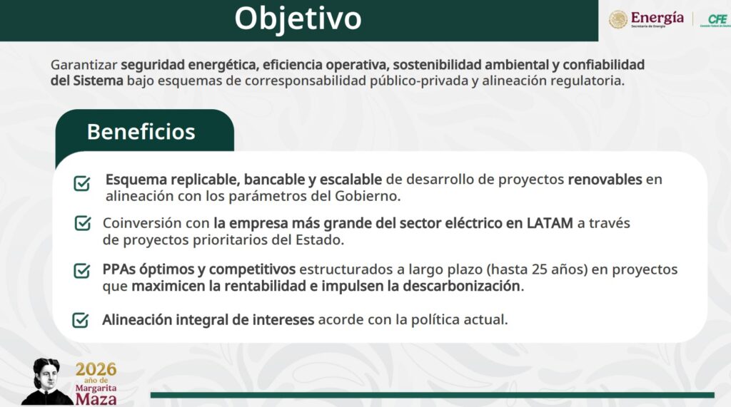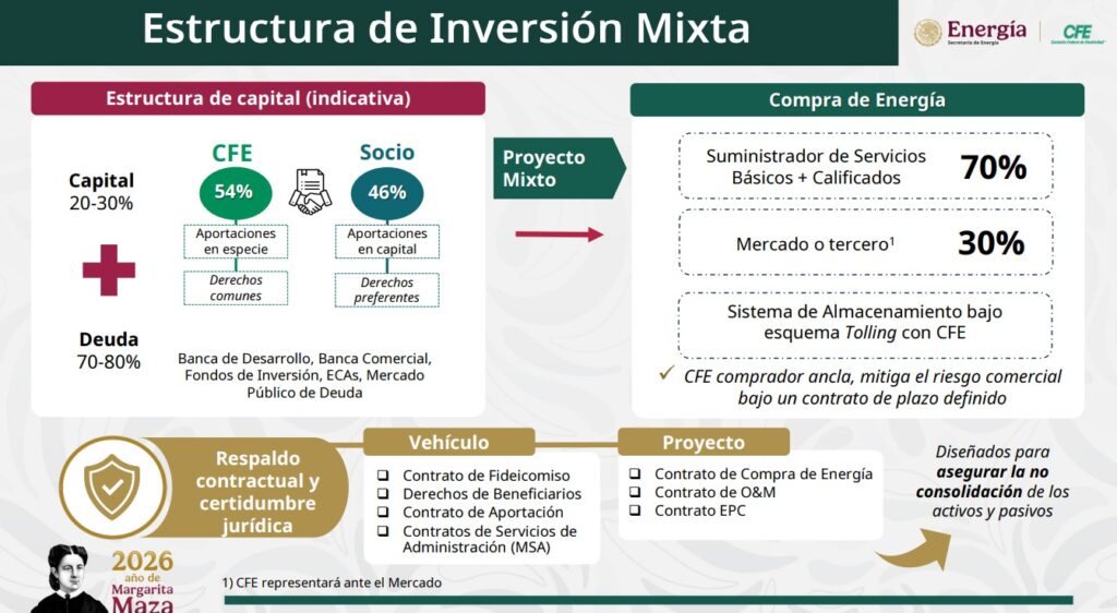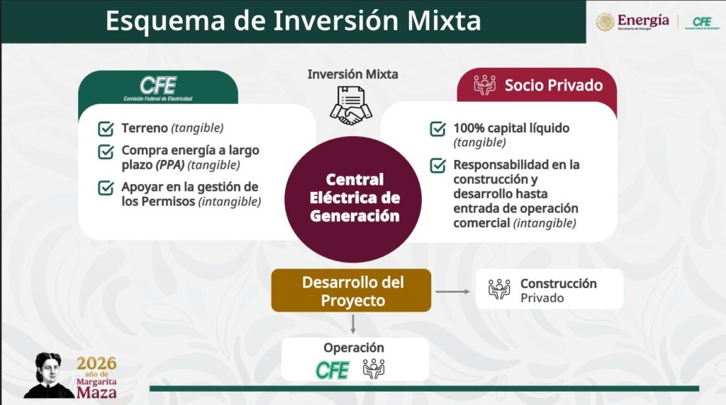 Denuncia al 9933989844… 🚩⚠️ ¡Esquemas de Desarrollo Mixto CFE; socio y comprador estratégico!; de acuerdo con la presentación Convocatoria para Esquemas de Desarrollo Mixto CFE, fechada el 6 de febrero de 2026, la Comisión Federal de Electricidad ( @CFEmx ) puso en marcha un proceso para atraer inversión privada bajo un modelo de corresponsabilidad público-privada orientado al desarrollo de nueva capacidad de generación eléctrica, con énfasis en energías renovables y con el objetivo declarado de reforzar la seguridad energética, la eficiencia operativa, la sostenibilidad ambiental y la confiabilidad del sistema eléctrico nacional. El esquema propuesto se estructura como una inversión mixta en la que la CFE participa como socio estratégico y comprador ancla de la energía, mientras que el socio privado asume el desarrollo, la construcción y la operación inicial de los proyectos. El diseño busca alinear intereses con la política energética vigente y generar proyectos replicables, bancables y escalables, con contratos de compraventa de energía de largo plazo que pueden extenderse hasta 25 años, lo que permite mitigar el riesgo comercial y asegurar flujos constantes para la recuperación de la inversión. Dentro de este modelo, la CFE aporta elementos tangibles e intangibles como el terreno, la compra de energía a largo plazo y el acompañamiento en la gestión de permisos y autorizaciones. El socio privado, por su parte, contribuye con capital líquido, asume la responsabilidad integral de la construcción y el desarrollo hasta la entrada en operación comercial y se encarga de la operación y el mantenimiento, incluyendo actividades correctivas, preventivas y servicios especializados que pueden ser subcontratados. La central eléctrica resultante se desarrolla bajo este esquema mixto y, una vez alcanzada la tasa interna de retorno objetivo o concluido el contrato de compraventa, el activo revierte a favor de la CFE. La convocatoria parte de proyectos fotovoltaicos ya en desarrollo por la CFE que suman una capacidad total de 1,073 megawatts. De este total, 858 megawatts corresponden al proyecto Concepción Mendizábal y 215 megawatts al proyecto Cerro Prieto. Ambos se ubican bajo la gerencia de control regional del Centro Nacional de Control de Energía en Baja California Noreste, lo que los coloca como piezas relevantes en la estrategia de expansión de generación renovable en esa zona del país. Más allá de estos proyectos iniciales, el requerimiento de capacidad planteado por región asciende a 6,500 megawatts a nivel nacional. De esa cifra, 3,550 megawatts corresponden a tecnología fotovoltaica, 2,850 megawatts a energía eólica y 100 megawatts a termosolar. La distribución regional muestra un énfasis particular en el noreste, con una demanda de 2,260 megawatts, seguido por la región occidental con 1,540 megawatts y el noroeste con 1,000 megawatts. Otras regiones como Baja California, el norte, la oriental y la peninsular también presentan requerimientos específicos, principalmente en generación fotovoltaica, con aportaciones eólicas y termosolares más acotadas según la zona. La estructura de capital de los proyectos mixtos se plantea de manera indicativa con una participación accionaria de 54% para la CFE y 46% para el socio privado. El financiamiento se apoya en una combinación de capital propio, que representa entre 20 y 30%, y deuda, que oscila entre 70 y 80%, con la posible participación de banca de desarrollo, banca comercial, fondos de inversión, agencias de crédito a la exportación y el mercado público de deuda. La arquitectura contractual incluye fideicomisos, derechos de beneficiarios, contratos de aportación y acuerdos de administración, además de los contratos clave del proyecto como el de compraventa de energía, operación y mantenimiento, y el contrato de ingeniería, procura y construcción. En el esquema de comercialización de la energía, se establece que 70% de la producción se destine al suministro de servicios básicos y calificados, con la CFE como comprador ancla, mientras que el 30% restante puede colocarse en el mercado o con terceros. Este diseño busca reducir la exposición al riesgo de mercado y fortalecer la bancabilidad de los proyectos, al tiempo que se incorpora un sistema de almacenamiento de energía bajo un esquema de tolling con la CFE, que también funge como representante ante el mercado eléctrico. El reparto de flujos financieros prioriza la recuperación del inversionista privado durante la etapa inicial de operación. Los ingresos del proyecto, una vez descontados los costos operativos, el capital de trabajo y el servicio de la deuda, se distribuyen mayoritariamente al socio privado hasta que este alcance la tasa interna de retorno objetivo. Posteriormente, y al revertirse el activo, todas las distribuciones remanentes quedan en favor de la CFE. El esquema contempla incluso la posibilidad de que la empresa estatal realice aportaciones adicionales para acelerar la salida del socio privado. En materia de gobierno corporativo, el socio privado cuenta con derechos protectores y de control, incluyendo mayoría en la junta de beneficiarios, control del comité técnico y capacidad de veto en decisiones estratégicas como la venta, transmisión o modificación de contratos relevantes. A su vez, la CFE conserva un papel central en la facilitación de permisos, la supervisión de obra, el refuerzo de la red eléctrica y la ejecución de trabajos de interconexión, además de exigir la transferencia de conocimiento una vez alcanzada la rentabilidad objetivo del proyecto. La selección de los socios se basa en criterios técnicos, económicos y financieros que consideran la experiencia en desarrollo y operación de proyectos renovables, la capacidad para integrar sistemas de almacenamiento, el nivel de avance de los proyectos, el CapEx estimado, la tasa interna de retorno indicativa y la capacidad d