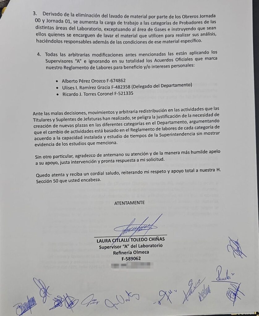 • ¡GABRIELA CASTRO, SUPERINTENDENTE QUÍMICA, PROVOCA CRISIS LABORAL EN LABORATORIO DE REFINERÍA OLMECA!