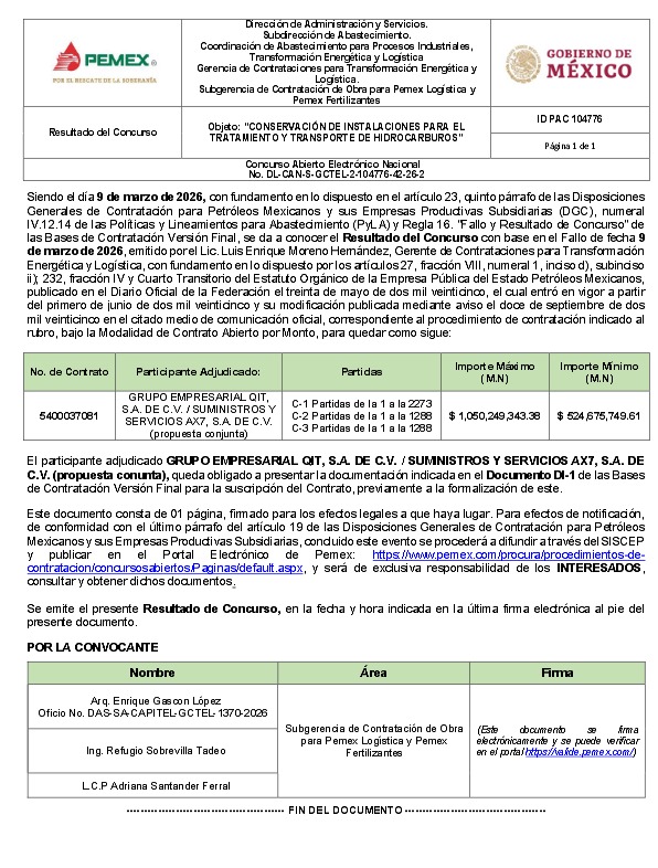 Denuncia al 9933989844…🚩⚠️ ¡GRUPO QIT: Beneficiada con papelería por CUITLÁHUAC GARCÍA, debuta con 1,055 MDP en Pemex! Pasó de surtir papelería -entre 2022 y 2023- para el @GobiernoVer de Cuitláhuac García Jiménez (actual titular de Cenagas), mismo periodo de la campaña de Rocío Nahle García rumbo a la Gubernatura de ese estado, con 27 contratos que suman 9.2 MDP, a dar servicios petroleros con maquinaria pesada y equipos especializado en instalaciones de @Pemex Logística (PLOG ahora DLSE) de Israel Benítez López, en marzo de 2026. Grupo Empresarial QIT, propiedad de Abigail Rojas Rojano y Samuel Gálvez Cortes, pasó de surtir material didáctico en contratos al Gobierno de Veracruz en 2024 cuando Rocío Nahle estaba en campaña para ser gobernadora, a recibir su primer contrato debut con @Pemex por 1,055,350,776.34 pesos con el fallo de la licitación DL-CAN-S-GCTEL (Luis Enrique Moreno Hernández) 2-104776-42-26-2, el pasado 9 de marzo 2026, para conservación de instalaciones para el tratamiento y transporte de hidrocarburos, contrato que incluye el uso de maquinaria pesada como grúas, tractores, camiones de más de 20 toneladas y equipos especializados de soldadura. Este contrato con @Pemex lo ejecutará en propuesta conjunta con Suministros y Servicios AX7 a nombre de José Francisco Capitaine Ramos y Emmanuel Ávalos Rivera, que estará vigente hasta el 31 de diciembre de 2026. El concurso estuvo mal a partir del acta de apertura de propuestas donde @Pemex ocultó deliberadamente los montos económicos, violando las leyes y reglamentos de máxima transparencia en los procesos concursales, de las ofertas que recibió de COOPSA Ambiental, DMGP Servicios de Integridad, Ingeniería Anticorrosión, Representación Ingeniería Consultoría Construcción y Servicios RICCSSA y de Grupo Empresarial QIT. En el acta de resultado de evaluación de las propuestas, sólo QIT resultó “solvente”. Y el documento del fallo fue avalado con las firmas de los funcionarios Enrique Gascón López, Refugio Sobrevilla Tadeo y Adriana Santander Ferral, todos de la Subgerencia de Contratación de Obra para @Pemex Logística y @Pemex Fertilizantes. Aunque QIT fue constituida en el año 2014, conforme a datos de la Plataforma Nacional de Transparencia (PNT) entre 2022 y 2023 cuando Rocío Nahle estaba en campaña camino a la Gubernatura de Veracruz que detentaba Cuitláhuac García Jiménez (actual titular de Cenagas) recibió 29 contratos en cascada por 9,276,015.66 desde la Secretaría de Educación estatal para dar proveeduría de material didáctico como libros, cuadernillos con respuestas o computadoras, todo dirigido al Instituto de Espacios Educativos, a la Subsecretaría de Educación Básica y para la Escuela Normal Superior Veracruzana Dr. Manuel Suárez Trujillo. Atención @Claudiashein @MarcelaVilleg15 @CNE_Mex @SENER_mx @GobiernoMX @FGRmexico @LuzElena_GE @ASF_Mexico  @SCJN @STPS_mx @Tu_IMSS @SEMARNAT_mx @agencia_asea @CENAGAS_mx @IMPetroleo @SATMX @Hacienda_Mexico @BuenGobierno_mx @Centrofcrl #OIC #UIF #OmarReyesColmenares …Zas!!!