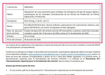 Denuncia al 9933989844 y [email protected]….Sígueme en Face: @LaPlataforma o Twitter: @LaPlataforma_ y la-plataforma.com donde hay más información… 1.- ¿Sabe usted estimado lector cuántas licitaciones están programadas en PEMEX de las subsidiarias importantes?… Un total de 11 mil 319; es decir, 943 promedio por mes (foto en mi Face)… El monto a licitar de 213 mil millones de pesos y según se ejercerá 104 mil millones de pesos de lo nuevo contratado… O sea a contratar 213 y solo ejercerán de eso en 2019, 104 mil millones de pesos más de lo que ya están… Según www.pemex.com/procura/procedimientos-de-contratacion/Paginas/programas.aspx…