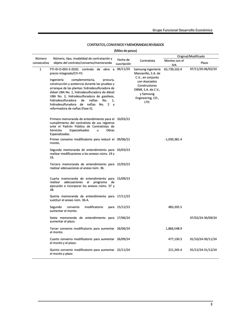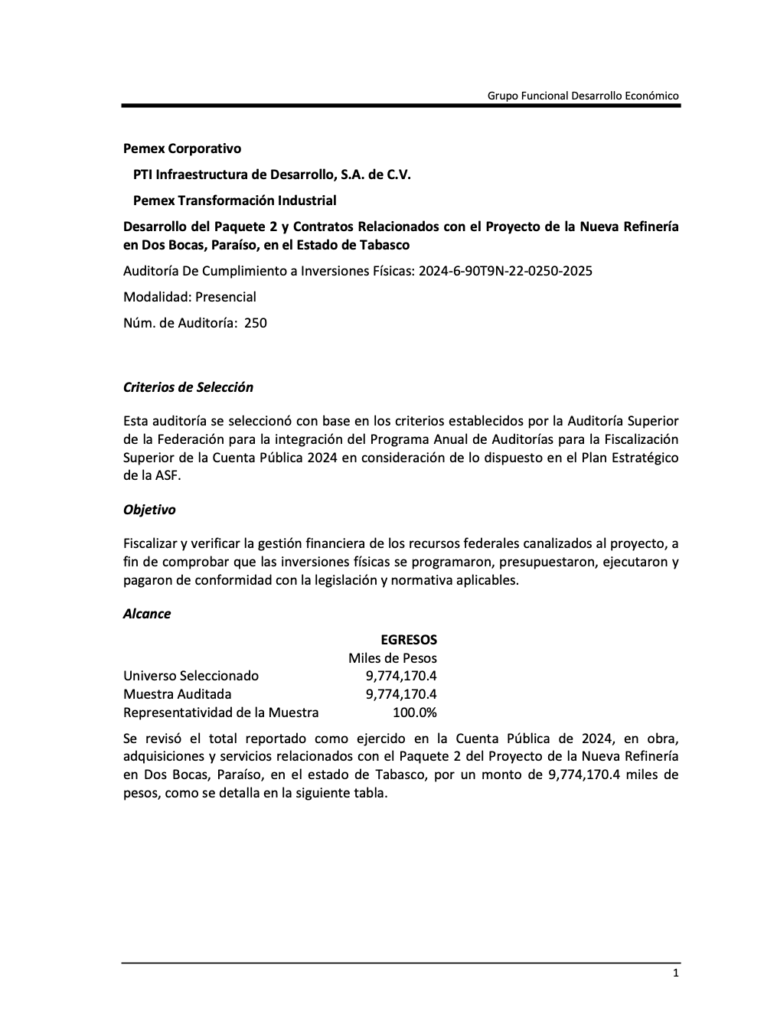 Denuncia al 9933989844… 🚩⚠️🏭‼️¡PAQUETE 2 REFINERÍA OLMECA: Corrupción y pagos en exceso (SAMSUNG) detectó ASF 2024! En la ronda de 31 auditorías a la cuenta pública de @Pemex en el ejercicio del año 2024, la Auditoría Superior de la Federación (ASF), que ahora dirige Aureliano Hernández Palacios Cardel, detectó diversas deficiencias administrativas, pagos en exceso, montos pendientes por aclarar y debilidades en la comprobación del gasto en el desarrollo del Paquete 2 de la Refinería Olmeca en Dos Bocas, Tabasco, correspondiente a la Cuenta Pública 2024 de @Pemex Corporativo, donde se revisó el ejercicio total de 9 mil 774 millones 170 mil pesos en 14 contratos de obra, servicios y adquisiciones. El informe detalla que los recursos auditados corresponden en su totalidad al monto ejercido en dicho paquete, el cual forma parte de un proyecto financiado mediante transferencias por más de 42 mil 696 millones de pesos realizadas por @Pemex Transformación Industrial a PTI Infraestructura de Desarrollo, empresa encargada de ejecutar los contratos. Uno de los principales hallazgos se relaciona con pagos en exceso por concepto de asistencia técnica en los contratos PTI-ID-PROC-51-2020 y PTI-ID-PROC-55-2020, donde inicialmente se determinaron diferencias por 632.2 miles de pesos derivadas de inconsistencias entre las horas pagadas y las realmente comprobadas. Estas irregularidades incluyeron falta de documentación soporte en un contrato y ausencia de evidencia sobre la participación de personal especializado en otro. Sin embargo, tras la presentación de documentación aclaratoria por parte de @Pemex, la ASF consideró solventada esta observación al acreditarse errores tipográficos en registros y acuerdos contractuales que permitían omitir reportes en días festivos. Además, la auditoría mantuvo una observación relevante en el contrato PTI-ID-PROC-49-2020, correspondiente a la adquisición de calentadores para la planta reformadora de naftas, donde se identificaron pagos en exceso por 98.6 miles de pesos en el concepto de “costos reembolsables”. La ASF determinó que no se acreditó documentalmente la movilización de un especialista durante los días 24 y 25 de abril de 2024, pese a que el contrato exige comprobantes como facturas de transporte, hospedaje o alimentación para validar estos gastos. Aunque la entidad fiscalizada argumentó que el técnico sí se trasladó de Veracruz a Tabasco y presentó algunos comprobantes parciales, la ASF concluyó que la documentación fue insuficiente para justificar el pago, por lo que emitió un pliego de observaciones en el que presume un probable daño a la Hacienda Pública Federal por 98 mil 647.89 pesos, más los intereses generados desde la fecha del pago hasta su recuperación. El informe también evidencia una constante en la ejecución de los contratos: múltiples modificaciones en montos y plazos mediante convenios y memorandas de entendimiento. El contrato principal de obra, identificado como PTI-ID-O-003-3-2020 y asignado al consorcio encabezado por SAMSUNG Ingeniería Manzanillo en conjunto con otras empresas, acumuló un monto total modificado de 67 mil 756 millones 851 mil pesos, tras diversas ampliaciones y reducciones. De este total, al cierre de 2024 se habían erogado 49 mil 280 millones 203 mil pesos, quedando pendiente por ejercer el 27.3%, equivalente a 18 mil 476 millones 648 mil pesos. Situación similar se observa en otros contratos relevantes, como el PTI-ID-PROC-55-2020, relacionado con la adquisición de compresores, que alcanzó un monto modificado de 1 mil 942 millones 244 mil pesos, con 334 mil 179 mil pesos aún pendientes de erogar; y el PTI-ID-PROC-51-2020, con un saldo pendiente del 19.9% de su monto total modificado. Estas cifras reflejan retrasos o compromisos financieros aún no cubiertos al cierre del ejercicio fiscal. Asimismo, varios contratos finiquitados incluyeron el reconocimiento de penas convencionales por incumplimientos o ajustes contractuales, lo que evidencia deficiencias en la planeación y ejecución. En otros casos, como los contratos PTI-ID-PROC-43-2020, PTI-ID-PROC-54-2020 y PTI-ID-PROC-58-2020, se identificaron montos pendientes por erogar que oscilan entre el 11.8% y el 15.8% del total modificado, lo que sugiere desfases financieros o administrativos. La auditoría ventiló debilidades en los mecanismos de control, supervisión y comprobación del gasto, particularmente en lo relativo a la documentación soporte de pagos, la gestión de contratos y la constante modificación de condiciones contractuales. Cabe señalar que muchas de estas ampliaciones millonarias se dieron después de la inauguración -el 1 de julio de 2022- de la refinería Olmeca para conmemorar “el fin de la etapa constructiva”. Sin embargo, el arranque formal de operaciones y producción de combustibles ocurrió más de dos años después, iniciando el procesamiento de carga el 29 de junio de 2024 y formalmente el 3 de agosto de 2024. Atención @Claudiashein @MarcelaVilleg15 @CNE_Mex @SENER_mx @GobiernoMX @FGRmexico @LuzElena_GE @ASF_Mexico @SCJN @STPS_mx @Tu_IMSS @SEMARNAT_mx @agencia_asea @CENAGAS_mx @IMPetroleo @SATMX @Hacienda_Mexico @BuenGobierno_mx @Centrofcrl @SEMAR_mx @PROFEPA_Mx @Mx_Diputados @senadomexicano #OIC #UIF #OmarReyesColmenares….Zas!!!