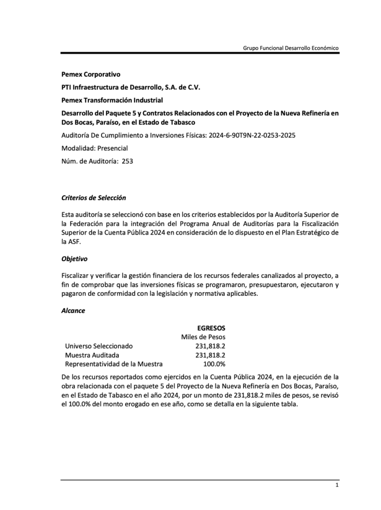 • ¡PAQUETE 5 REFINERÍA OLMECA: NO PRESENTÓ IRREGULARIDADES, ASF 2024!