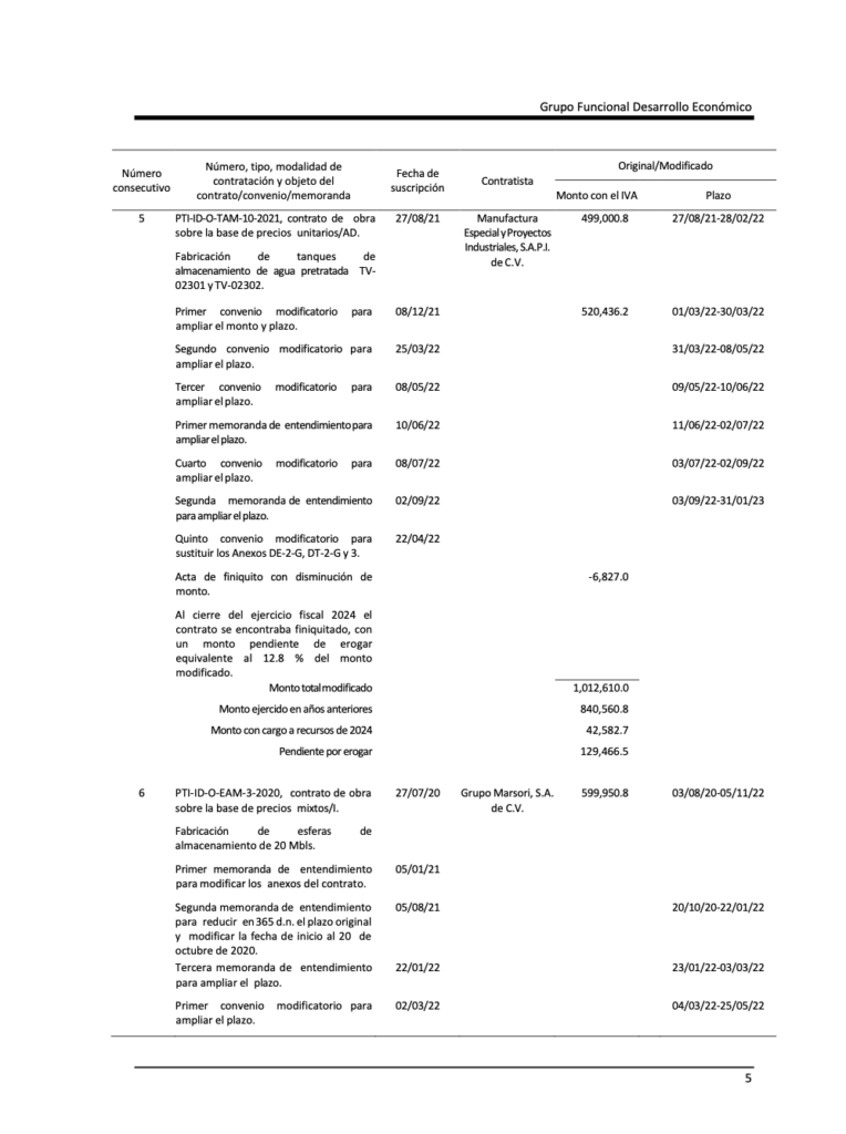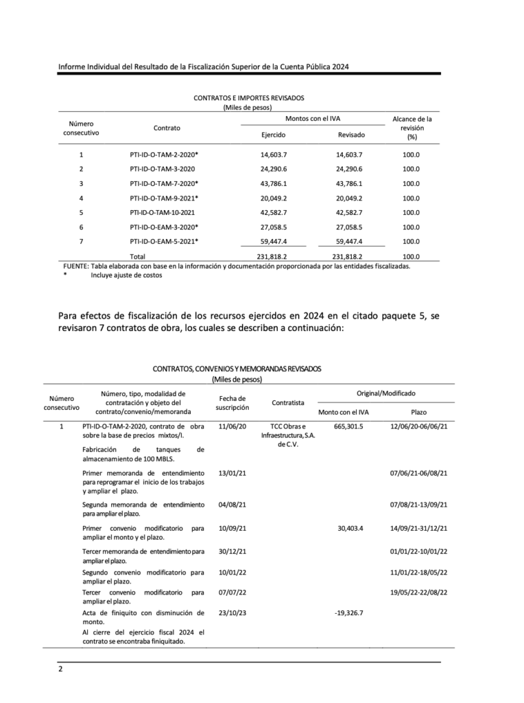Denuncia al 9933989844… 🏭‼️¡PAQUETE 5 REFINERÍA OLMECA: No presentó irregularidades, ASF 2024! En la ronda de 31 auditorías a la cuenta pública de @Pemex en el ejercicio del año 2024, la Auditoría Superior de la Federación (ASF), que ahora dirige Aureliano Hernández Palacios Cardel, concluyó que el desarrollo del Paquete 5 de la Refinería Olmeca en Dos Bocas, Paraíso, Tabasco, no presentó irregularidades en el ejercicio de los recursos revisados durante 2024, tras fiscalizar un monto total de 231 millones 818 mil 200 pesos, equivalente al 100% del universo seleccionado. El análisis abarcó siete contratos de obra vinculados con la fabricación de tanques y esferas de almacenamiento, así como trabajos complementarios del proyecto energético. De acuerdo con el informe, los recursos auditados corresponden a contratos suscritos por Pemex Transformación Industrial y ejecutados a través de PTI Infraestructura de Desarrollo, los cuales incluyeron montos ejercidos en 2024 por 14.6 millones, 24.2 millones, 43.7 millones, 20.0 millones, 42.5 millones, 27.0 millones y 59.4 millones de pesos, respectivamente, todos revisados en su totalidad. Estos contratos, identificados con claves como PTI-ID-O-TAM-2-2020, PTI-ID-O-TAM-3-2020 y PTI-ID-O-EAM-5-2021, contemplaron tanto obra pública como ajustes de costos derivados de modificaciones contractuales. En el desglose contractual, la ASF documentó múltiples convenios modificatorios, memorandas de entendimiento y actas de finiquito que implicaron ampliaciones de plazo, incrementos y reducciones de monto, así como reprogramaciones en la ejecución. Por ejemplo, el contrato PTI-ID-O-TAM-2-2020, a cargo de TCC Obras e Infraestructura, S.A. de C.V., registró un monto total modificado de 676.3 millones de pesos, con una disminución final de 19.3 millones tras su finiquito. De este instrumento, únicamente 1.7 millones correspondieron a recursos ejercidos en 2024, además de 12.8 millones por ajuste de costos. En el caso del contrato PTI-ID-O-TAM-3-2020, firmado con Impulsora de Desarrollo Integral, se reportó un monto contratado de 634 millones de pesos, con 560.8 millones ejercidos en años anteriores y 24.2 millones en 2024, manteniendo un saldo pendiente por erogar de 48.8 millones, equivalente al 7.7% del monto modificado. Por su parte, el contrato PTI-ID-O-TAM-7-2020, adjudicado a Fabricación y Reparación Electromecánica, y Recubrimientos Integrales del Norte, alcanzó un monto total modificado superior a 1,130 millones de pesos, con 4.2 millones ejercidos en 2024 y 39.5 millones por ajustes de costos. Otros contratos también reflejaron variaciones relevantes. El PTI-ID-O-TAM-9-2021 registró una reducción de 120.4 millones de pesos en su finiquito, mientras que el PTI-ID-O-TAM-10-2021 mantuvo un monto pendiente por erogar de 129.4 millones, equivalente al 12.8% del total modificado. En tanto, el contrato PTI-ID-O-EAM-3-2020 tuvo un incremento de 15 millones en su cierre, y el PTI-ID-O-EAM-5-2021 presentó una disminución de 13.4 millones de pesos, tras ajustes en su ejecución. La auditoría también revisó el flujo de recursos federales destinados al proyecto. En el Presupuesto de Egresos de la Federación 2024 se aprobaron 2 mil 752 millones de pesos para inversión en @Pemex Transformación Industrial; sin embargo, en la Cuenta Pública se reportó un gasto ejercido de 46 mil 124 millones de pesos. De este total, 42 mil 696 millones fueron transferidos a PTI Infraestructura de Desarrollo para cumplir con compromisos financieros de la refinería, incluyendo los 231.8 millones analizados del Paquete 5. Cabe señalar que muchas de estas ampliaciones millonarias se dieron después de la inauguración -el 1 de julio de 2022- de la refinería Olmeca para conmemorar “el fin de la etapa constructiva”. Sin embargo, el arranque formal de operaciones y producción de combustibles ocurrió más de dos años después, iniciando el procesamiento de carga el 29 de junio de 2024 y formalmente el 3 de agosto de 2024. Atención @Claudiashein @MarcelaVilleg15 @CNE_Mex @SENER_mx @GobiernoMX @FGRmexico @LuzElena_GE @ASF_Mexico @SCJN @STPS_mx @Tu_IMSS @SEMARNAT_mx @agencia_asea @CENAGAS_mx @IMPetroleo @SATMX @Hacienda_Mexico @BuenGobierno_mx @Centrofcrl @SEMAR_mx @PROFEPA_Mx @Mx_Diputados @senadomexicano #OIC #UIF #OmarReyesColmenares….Zas!!!