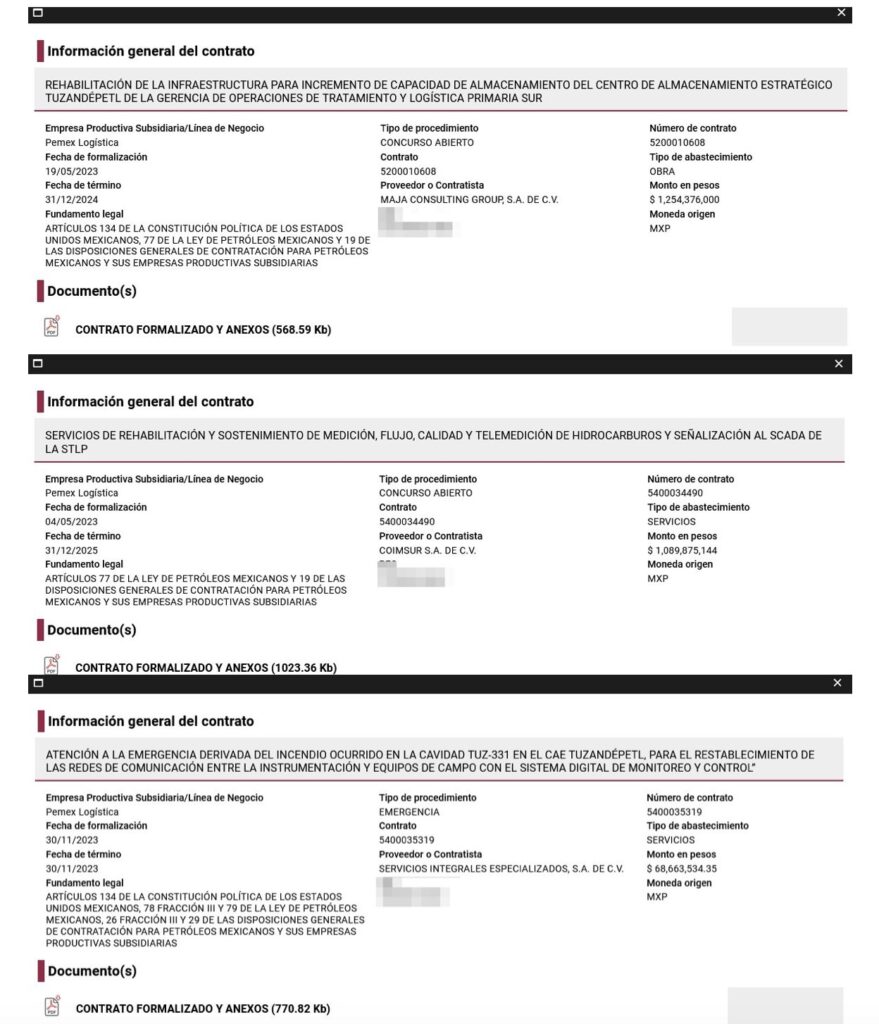 Denuncia al 9933989844… 🚩⚠️🔥☠️ ¡SSIE/MAJA/ERBANIMEX/COIMSUR ganones por tragedia en Tuzandeptl; familias de deudos exigen justicia por años!; aunque @Pemex clasificó como “información reservada en forma total” el Análisis Causa Raíz (ACR) de la explosión ocurrida el 23 de febrero de 2023 en el equipo de perforación PM-119, que realizaba trabajos de mantenimiento en la Cavidad Tuzandepetl-33, ubicada en el Centro de Almacenamiento Subterráneo de Crudo de Pemex en Ixhuatlán del Sureste, Ver, porque “puede ser utilizada de forma tendenciosa”, la paraestatal reveló que existe la denuncia penal FED/VER/COATZ/0000612/2023, siniestro que dejó una derrama económica posterior de 2,412,914,678.26 pesos en 3 contratos de emergencia; mientras los deudos de los trabajadores fallecidos siguen exigiendo justicia y reparación de daños a @Pemex ; con el aval de que la respuesta a la solicitud de información 340023800051325 donde se pidió el ACR de Tuzandepetl-33, pueda interferir con el debido proceso legal de la denuncia, Rosa Bello Pérez, Marcela Villegas Silva, Víctor Manuel Navarro Cervantes, Laura Alicia Stefany Garduño Martínez, José Luis García Zárate y Guillermo Alejandro Perabeles Garza, quienes integran el Comité de Transparencia de @Pemex , firmaron el acuerdo Acuerdo-CT-PM-35-16-O-25, donde determinaron que era prudente encubrir todo con una reserva de hasta por 5 años; sin embargo, un ACR técnico no necesariamente interfiere en una investigación penal: son documentos de seguridad industrial, metodológicos (fallas de equipo, mantenimiento, capacitación, presión de gas, negligencias); la clasificación “total” podría encubrir contratistas que operaban el equipo PM-119, negligencias con omisión de protocolos de seguridad industrial, incluso advertencias previas no atendidas; conforme al principio de máxima publicidad (artículo 6º Constitucional y artículo 4º de la Ley Federal de Transparencia), @Pemex tiene la obligación de entregar la información en una versión pública, testando únicamente aquellos datos que realmente pudieran afectar la carpeta de investigación; en contraste al macabro siniestro, los que sí ganaron por esta tragedia en 3 contratos por la emergencia fueron: 1.- Contrato 5400035319 por 68,663,534.00 pesos para la empresa Suministros y Servicios Integrales Especializados a nombre de Oswaldo Rosales Rivera para servicios de atención a la emergencia derivada del incendio ocurrido en la cavidad Tuz-331 en el CAE Tuzandepetl, para el restablecimiento de las redes de comunicación entre la instrumentación y equipos de campo con el Sistema Digital de Monitoreo y Control, ejecutado del 24 de febrero de 2023 (al día siguiente del siniestro) al 30 de noviembre de 2023; 2.- Contrato 5200010608 para rehabilitación de la infraestructura para incremento de capacidad de almacenamiento del CAE Tuzandepetl por un monto máximo ejercido de 1,254,375,999.97 pesos que inició el 19 de mayo de 2023 y se mantiene vigente hoy hasta el 31 de diciembre de 2025, asignado para Maja Consulting Group en propuesta conjunta con Erbanimex, representadas por Ana María Macías Juárez y Erik Yussep Barrañón Nieto, respectivamente; y 3.- Contrato 5400034490 entregado a Coimsur, representada por Abigail García Jimenez, por un monto de 1,089,875,144.29 pesos para realizar servicios de rehabilitación y sostenimiento de medición, flujo, calidad y telemedición de hidrocarburos y señalización a Scada de la STLP que incluyen la Central de Almacenamiento Estratégico Tuzandepetl, vigente del 4 de mayo de 2023 al 31 de diciembre de 2025; atención @Claudiashein @MarcelaVilleg15 @CNE_Mex @SENER_mx @GobiernoMX @FGRmexico @LuzElena_GE @ASF_Mexico @SCJN @STPS_mx @Tu_IMSS @SEMARNAT_mx @agencia_asea @CENAGAS_mx @IMPetroleo @SATMX @Hacienda_Mexico @BuenGobierno_mx @Centrofcrl #OIC #UIF #OmarReyesColmenares …Zas!!!