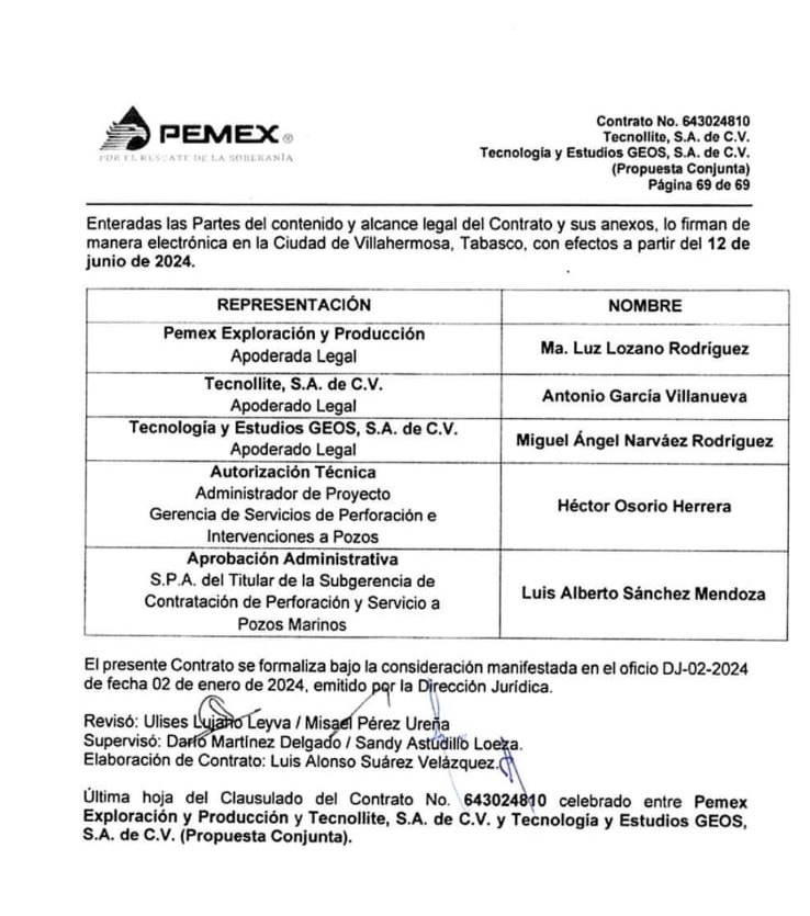 Denuncia al 9933989844… 🚩⚠️❗️¡TECNOLLITE: Maquillaje inflado en mantto estructural de GAMIÑO y BORRELL! Muchos cambios por corrupción en Perforación @Pemex han provocado remociones, liquidaciones y variaciones en procesos de contratación, pero las investigaciones siguen en la Subdirección de Perforación y Mantenimiento a Pozos (SPMP) @Pemex en donde al parecer serán desbloqueados los ingenieros que llevaban años bloqueados por la mafia de los ex gerentes Renato Gamino Ramos y Hector Osorio Herrera, a quienes ya les dieron la puntilla, y su alfil Wendy Borrell “La Bruja”, quien inexplicablemente sigue dando lata, quienes dañaron sustancialmente a esta Subdirección y merecen ser denunciados penalmente. El asunto es que a través de La Bruja siguen operando sus contratos y contratistas preferidos como ya se ha repetido una y otra vez en este espacio. Tal es el caso de la empresa TECNOLLITE de Antonio García Villanueva quien tiene vínculos directos con Wendy Borrell y Renato Gamiño e inclusive ya están haciendo arreglos con los nuevos servidores públicos en la GOME. Esta empresa -quien tiene el contrato estructural- ha amasado una fortuna simulando trabajos que nunca se han hecho y elevando la volumetría de gasto sin sustento en los materiales y componentes que supuestamente ha dado mantenimiento estructural, mismo caso por el cual COMINCAR y CICSA Construcciones han generado millones en sus bolsillos a costa de esta gran mafia en este contrato de servicio estructural. Actualmente esta iniciativa debe ser investigada y checada por la Subdirección ya que hay empresas que sin experiencia en contratos con @Pemex están haciendo arreglos para participar y no tienen la experiencia en equipos terrestres ni marinos para estos servicios estructurales. Queda ajustar los criterios de evaluación sin dejarlos abiertos y que entre cualquier empresa que nunca ha ejecutado trabajos en @Pemex y quiera hacer arreglos bajo la mesa. Se está preparando un denuncia ante todas las órdenes de servicio que lleva ejecutadas TECNOLLITE (quien tiene giro agropecuario y de un día para otro llega de la zona norte a Villahermosa, Tabasco, con el contrato de mantenimiento estructural) y que no tienen sustento de haber realizado los trabajos y son puro maquillaje, cobrando por no haber hecho nada y dañando sustancialmente a la SPMP. TECNOLLITE, de Antonio García Villanueva y Rosa Norma Ramón Hernández, y Tecnología y Estudios GEOS, de Gaspar Campos Reyes y Carlos Alfonso Serrano Marín y Juan Carlos Macías Celestino, comparten el contrato 643024810 para servicio de mantenimiento estructural y arquitectónico a los equipos y/o instalaciones de la SPMP, Paquete II Terrestre (Región Norte y Sur) que ejecutaron en propuesta conjunta por un monto de 340,024,014.8 pesos que estuvo vigente del 12 de junio de 2024 al 31 de julio de 2025, que debe ser auditado. TECNOLLITE acumula 4 contratos (incluyendo el que comparte con GEOS) por un monto de 658,766,913.84 pesos. De estos 3 contratos (643024810 643023609 y 643023609) fueron firmados en el sexenio de AMLO/Agrónomo y 1 contrato (653025600) para adquisición de compresores de aire para los talleres y plantas de lodo de la Gerencia de Operación y Mantenimiento de Equipos fue firmado en el periodo de Sheinbaum/Padilla, vigente hasta el 31 de diciembre de 2027. En tanto Tecnología y Estudios GEOS -cuyo dueño apareció en fotografías con Adán Augusto López Hernández cuando fue gobernador de Tabasco en 2022- lleva 5 contratos con @Pemex por un monto en conjunto de 755,025,888.87 pesos de los que 3 contratos (645013842, 645004613 y 648224603) son del sexenio de AMLO/Agrónomo y 2 contratos (655005804 y 655005623) con Sheinbaum/Padilla que están vigentes hasta 2027 y 2028, respectivamente. Atención @Claudiashein @MarcelaVilleg15 @CNE_Mex @SENER_mx @GobiernoMX @FGRmexico @LuzElena_GE @ASF_Mexico  @SCJN @STPS_mx @Tu_IMSS @SEMARNAT_mx @agencia_asea @CENAGAS_mx @IMPetroleo @SATMX @Hacienda_Mexico @BuenGobierno_mx @Centrofcrl #OIC #UIF #OmarReyesColmenares …Zas!!!