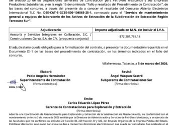 Por ende el pasado 6 de noviembre, la ONG “Por un México Justo” dirigió una carta a LUIS FERNANDO BETANCOURT SÁNCHEZ, subdirector de Disciplina Operativa, Seguridad, Salud y Protección Ambiental de Pemex para solicitarle retirar las normas NRF 032, NRF 096 y la NRF 027 las cuales promueven el uso de cadmio en diversas licitaciones públicas…Habrá más…Denuncias al 9933989844 y [email protected]