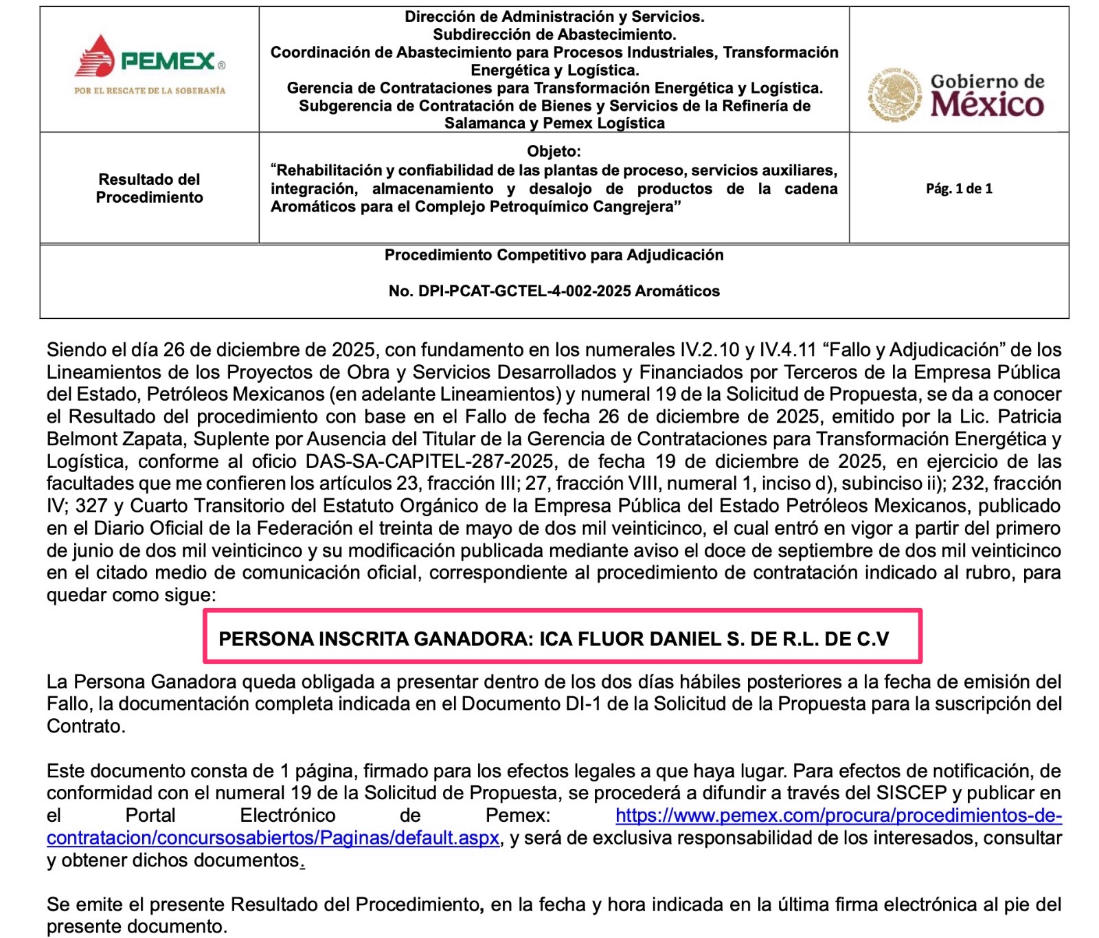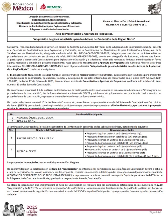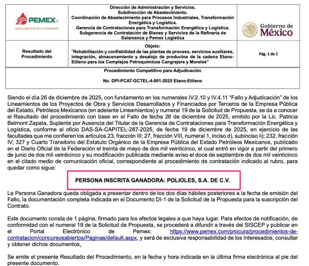 Denuncia al 9933989844… 🚩⚠️💰‼️¡Violación sistemática de @Pemex en Adjudicaciones Directas y Licis; esconde ilegalmente montos y datos claves!; normalizan en las contrataciones esconder negociaciones, montos, propuestas económicas, técnicas y comerciales; soportado en reglamentos internos que contravienen las leyes constitucionales de máxima publicidad, @Pemex dio muchos pasos atrás este sexenio en la administración del director general Víctor Rodríguez Padilla en materia de transparencia en contrataciones públicas; ya que desde agosto 2025 va ocultando datos clave en las Licitaciones Públicas que exige la ley como los montos de las propuestas económicas durante los actos de apertura hasta la fecha y desde enero 2026 comenzó a emitir Adjudicados Directas sin revelar el monto económico por los trabajos a realizar, con lo que vulnera de manera frontal el principio constitucional de máxima publicidad, como quedó asentado en 2 recientes asignaciones con fallos incompletos, @Pemex se limita a informar sólo el objeto del contrato, el número de procedimiento, la fecha y el nombre de la empresa ganadora, pero omite deliberadamente el dato esencial: el monto adjudicado en procedimientos de altísima relevancia estratégica como: 1.- Adjudicación Directa número DPI-PCAT-GCTEL (Luis Enrique Moreno Hernández) 4-001-2025 para rehabilitación y confiabilidad de las plantas de proceso, servicios auxiliares, integración almacenamiento de productos de la cadena etano-etileno para los Complejos Petroquímicos Cangrejera y Morelos para la empresa Polioles y 2.- Adjudicación Directa número DPI-PCAT-GCTEL (Luis Enrique Moreno Hernández) 4-002-2025 para rehabilitación y confiabilidad de las plantas de proceso, servicios auxiliares, integración almacenamiento de productos de la cadena de aromáticos para el Complejo Petroquímico Cangrejera para la empresa ICA Fluor Daniel; en ambos casos @Pemex publica un “Resultado del Procedimiento” de una sola página, sólo para “taparle el ojo al macho” contraviniendo la ley, sin incluir el valor económico del contrato, a pesar de que el fallo es el acto administrativo que materializa la adjudicación de recursos públicos; especialistas en derecho administrativo consultados advierten que un fallo sin monto es jurídicamente incompleto, ya que impide conocer el impacto presupuestal, la razonabilidad del precio y la existencia de posibles sobre costos; “la era de la opacidad en @Pemex ” comenzó desde agosto 2025, con la nueva administración, que dejó de hacer públicos los montos en las actas de apertura en casi todos sus procedimientos de contratación mediante licitación y concentró los importes en documentos separados no difundidos públicamente; ahora, publica fallos y resultados sin revelar el monto adjudicado, cerrando por completo el ciclo de información económica del procedimiento; esto ya no puede explicarse como un error administrativo aislado ya que desde esa fecha se trata de una práctica sistemática y deliberada de ocultamiento; no existe ningún fundamento legal válido; @Pemex no ha emitido -ni en los documentos ni en respuestas de transparencia- un acuerdo de reserva que justifique ocultar los montos adjudicados ya que tendrían que modificar la Constitución vigente; tampoco ha aplicado prueba de daño, análisis de interés público, ni plazo de desclasificación; las reglas internas invocadas para la etapa de negociación no aplican al fallo, que es un acto definitivo y público por naturaleza, por lo que ninguna política interna puede anular lo dispuesto por el Artículo 6 constitucional y la Ley General de Transparencia y Acceso a la Información Pública; conforme a la opinión de un miembro del área jurídica de @Pemex , fundamentos como reglas de contratación para censurar información, así como licitaciones con un sólo concursante, son señales inequívocas que dentro de la paraestatal podría haber casos concretos de corrupción, además @Pemex no descarta -vía Transparencia- que esta normativa suya esté por encima de la legislación nacional; en las aperturas de propuestas con estas anomalías, @Pemex señala en las actas que oculta los montos bajo la excusa de la regla “Regla 8.5 de Negociación” de los procedimientos internos de contratación mediante licitación, sin embargo, el experto en materia jurídica consultado confirma que esta regla no prohíbe en ningún momento que se haga pública la información de las ofertas; en estas actas @Pemex señala que la información de los montos se “asienta en un documento independiente”, llamado “Constancia de importe de la propuesta recibida” o “Constancia de importes de las propuestas recibidas”, que pone a resguardo del Área de Contratación y no se anexa al acta pública, algo que es completamente ilegal, dijo el profesional jurídico, que accedió a hacer un análisis del caso; las violaciones, según el experto, es a la propia Ley de Petróleos Mexicanos (hoy Ley de la Empresa Productiva del Estado, @Pemex ), en Artículo 79 fracción VI (prohibición de abstenerse o condicionar la presentación de propuestas), Artículo 80 y 81: principios de transparencia, máxima publicidad y difusión de la información de los procedimientos; estas acciones de ocultar información también violan la Ley General de Transparencia y Acceso a la Información Pública y su homóloga federal (LFTAIP): Artículo 70 fracción XXVIII y XXIX, que señala: los sujetos obligados deben poner a disposición del público “los montos asignados y los resultados de los procedimientos de Adjudicación Directa, Invitación Restringida y Licitación” y “los contratos celebrados”; las acciones de @Pemex también van en contra del Artículo 6º Constitucional que exige el principio de máxima publicidad a todas las instituciones gubernamentales; lo peor, es que hasta viola sus propias reglas como las Disposiciones Generales de Contrat