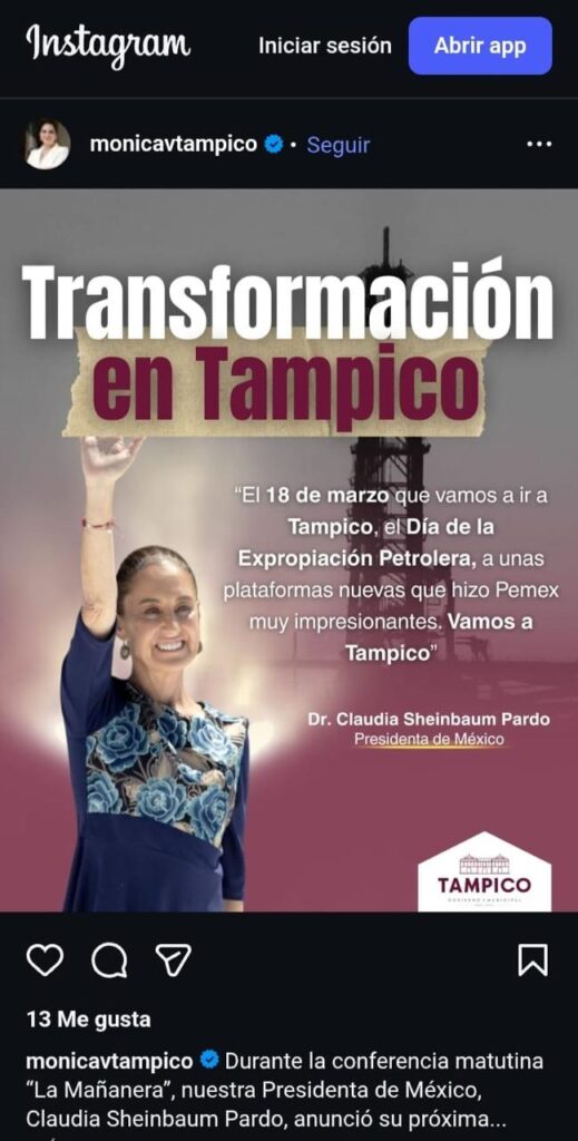 Denuncia al 9933989844… 🚩⚠️¡Celebrarían el 18 de Marzo en el Campo Trión en Tamaulipas!; este próximo 18 de Marzo 2026, día en que se festejará un aniversario más de la Expropiación Petrolera, será en Tamaulipas, evento al que asistiría la presidenta Claudia Sheinbaum Pardo. Según un posteo de Mónica Villarreal Anaya, presidenta municipal de Tampico y hermana de Américo Villarreal Anaya, actual gobernador de Tamaulipas, expuso que ese día “visitarán unas plataformas nuevas que hizo @Pemex muy impresionantes”. Todo indica se trata del desarrollo petrolero en aguas ultra profundas en el Campo Trión en Altamira, Tamaulipas, que arrancó esta semana, mismo al que asistió Víctor Rodríguez Padilla, director general de la paraestatal, en una ceremonia realizada en el Puerto, proyecto puesto en marcha en alianza entre @Pemex y la empresa australiana Woodside Energy, con una inversión estimada en 10 mil millones de dólares para impulsar la producción de gas convencional para reducir la dependencia del gas proveniente de Estados Unidos. Además asistieron el propio Américo Villarreal Anaya, gobernador; Stephan Drouaud, vicepresidente de Woodside Energy; Luz Elena González Escobar, secretaria de Energía; Octavio Barrera Torres, director de Exploración y Extracción @Pemex ; Jesús Toledo Guzmán, subsecretario de Asuntos Marítimos y Portuarios; Vidal Llerenas Morales, subsecretario de Industria y Comercio de la Secretaría de Economía; Fidel Maldonado Herrera, titular de la ASIPONA Altamira; Walter Julián Ángel Jiménez, secretario de Desarrollo Energético de Tamaulipas, y Ninfa Cantú Deándar, secretaria de Economía. atención @Claudiashein @MarcelaVilleg15 @CNE_Mex @SENER_mx @GobiernoMX @FGRmexico @LuzElena_GE @ASF_Mexico @SCJN @STPS_mx @Tu_IMSS @SEMARNAT_mx @agencia_asea @CENAGAS_mx @IMPetroleo @SATMX @Hacienda_Mexico @BuenGobierno_mx @Centrofcrl #OIC #UIF #OmarReyesColmenares …Zas!!!