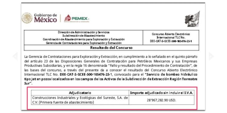 Denuncia al 9933989844… 🚩⚠️❗️¡CIESSA/ALARCÓN: Revienta contrato de bombeo hidráulico tipo Jet en Región Sur Pemex! Con equipos viejos, corrupción y diversas anomalías acumula 2,733,319,175.56 pesos en 7 contratos con el recién asignado. Construcciones Industriales y Ecológicas del Sureste (CIESSA), de los hermanos Luis Andrés y José Luis Arrocha Alarcón, señalada en múltiples denuncias públicas por actos de corrupción y favoritismo en licitaciones de @Pemex recibió un contrato de la licitación DEE-CAT-S-GCEE-500-105476-25-1 para servicio de bombeo hidráulico tipo Jet en pozos localizados en los campos de los Activos de la Subdirección de Extracción Región Terrestre Sur (SERTS) de Marcos Torres Fuentes “El Padrino de los Multimillonarios XV Años” que derivó en el contrato número 655006802. El monto para CIESSA fue por 28,967,282.90 dólares (unos 504,423,969.37 pesos) con vigencia hasta el 31 de diciembre de 2028 conforme al modelo de contrato en las bases de contratación. Los funcionarios que avalaron el fallo para CIESSA fueron Pablo Angeles Hernández, superintendente de Contratación, y Ángel Vázquez Sastré, subgerente de Contrataciones Sur. @Pemex ocultó los montos de las demás ofertas durante la apertura de propuestas, los participantes fueron: GEOLIS, PANAL Ingeniería, DOWELL SCHLUMBERGER de México y WEATHERFORD de México, entre otras. Las anomalías comenzaron desde la primer acta de preguntas y respuestas, donde @Pemex le flexibilizó aspectos de personal, experiencia y documentación alternativa a CIESSA, en sus preguntas 2 y 3 le aceptaron que metiera perfiles con ingeniería en electrónica para supervisores operativos e ingenieros de diseño, lo que hace evidente que CIESSA no tenía los perfiles necesarios para cumplir el contrato como fue diseñado originalmente. En total recibió 117 preguntas, de estas CIESSA planteó 7. Y @Pemex rectificó varias penas convencionales para hacer el contrato más atractivo. Sin embargo, el contrato de CIESSA está reventado desde el principio, ya que su propuesta tuvo -56% de descuento, lo que deriva si se contrasta el monto contratado con los montos del Anexo “C” Catálogo de Conceptos que presentó esta amañada contratista, donde resulta imposible cumplir con lo estipulado en el contrato sobre todo en sus primeros 4 puntos. Plantea por ejemplo: 1.- Servicio integral de extracción continua de hidrocarburos con el sistema artificial de producción Bombeo Hidráulico tipo Jet de 200 y 300 HP de gas LP por 1,269.96 dólares diarios. 2.- Servicio integral de extracción continua de hidrocarburos con el sistema artificial de producción Bombeo Hidráulico tipo Jet de 200 y 300 HP de gas producido por 969.95 dólares diarios. 3.- Servicio integral de extracción continua de hidrocarburos con el sistema artificial de producción Bombeo Hidráulico tipo Jet de 301 a 400 HP de gas LP por 587 dólares diarios. Y 4.- Servicio integral de extracción continua de hidrocarburos con el sistema artificial de producción Bombeo Hidráulico tipo Jet de 301 a 400 HP de gas producido por 500.04 dólares diarios. Precios que solo cuadran con corrupción en la supervisión en campo, donde por cierto ya comenzaron a incumplir porque no se han instalado. CIESSA acumula 2,733,319,175.56 pesos en 7 contratos: 1 (655006802) con Sheinbaum/Padilla, 4 (643021801, 643021800, 5200009968 y 5200009158) con AMLO/Agrónomo y 2 (645016802 y 423114803) con EPN/Treviño. Estos son 1.- Contrato 645016802 para servicio de bombeo hidráulico tipo Jet en pozos localizados en los campos de los activos de la Región Sur, vigente del 27/08/2016 al 31/12/2023, por 1,774,100,847 pesos. 2.- Contrato 643021801 para servicio de mantenimiento estructural y arquitectónico a los equipos y/o instalaciones a cargo de @Pemex Exploración y Producción, Partida II (Región Sur), vigente del 20/10/2021 al 31/12/2022, por 104,890,414.40 pesos. 3.- Contrato 643021800 para servicio de mantenimiento estructural y arquitectónico a los equipos y/o instalaciones a cargo de @Pemex Exploración y Producción, Partida I (Región Marina), vigente del 20/10/2021 al 31/12/2022, por 25,513,884.59 pesos. 4.- Contrato 5200009968 para rehabilitación de la torre fraccionadora V-10001, torre de vacío V-10006, desaladora XV-10007 A/B y VX-10008 A/B (incluye limpieza química, suministro e instalación de empaques estructurados) en la planta combinada Maya U-10000 del Sector No. 5 de la refinería Minatitlán, Veracruz, vigente del 21/12/2020 al 14/12/2021, por 145,220,929.40 pesos. 5.- Contrato 5200009158 para rehabilitación de la planta de tratamiento de agua residual (PTAR) del Sector No. 7 de la refinería Minatitlán, vigente del 16/12/2019 al 30/03/2020, mediante Adjudicación Directa por 53,369,300.00 pesos. 6.- Contrato 423114803 para trabajos de mantenimiento estructural y arquitectónico a los equipos y/o instalaciones a cargo de la Unidad de Negocio de Perforación, vigente del 03/04/2014 al 31/12/2016, por 125,799,830.80 pesos. 7.- Contrato 655006802, el reciente. Atención @Claudiashein @MarcelaVilleg15 @CNE_Mex @SENER_mx @GobiernoMX @FGRmexico @LuzElena_GE @ASF_Mexico  @SCJN @STPS_mx @Tu_IMSS @SEMARNAT_mx @agencia_asea @CENAGAS_mx @IMPetroleo @SATMX @Hacienda_Mexico @BuenGobierno_mx @Centrofcrl #OIC #UIF #OmarReyesColmenares …Zas!!!