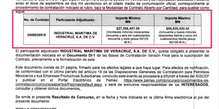 Denuncia al 9933989844… 🚩⚠️⚓️ ¡Dedazo Pemex de 59.6 MDP a INDUMAR por certificación SBM a embarcaciones!; @Pemex asignó por dedazo el fallo de la licitación DL-CAN-S-GCTEL (Luis Enrique Moreno Hernández) 4-105253-180-25-1 a la empresa Industrial Marítima de Veracruz (Indumar), representada por Álvaro Cuauhtémoc Sánchez Pacheco, bajo el contrato 5400036919 por un monto de 59,635,430.42 pesos para inspección y mantenimiento de equipos de ayuda a la navegación para la certificación del SBM (Shore Based Maintenance) de las embarcaciones de la flota mayor y flota menor adscritas a @Pemex a un plazo que vence el 31 de diciembre de 2025; este procedimiento a favor de Indumar fue direccionado desde @Pemex Logística por Luis Enrique Moreno Hernández, gerente de Contrataciones para Transformación Energética y Logística (GCTEL) ya que fue la única opción que apareció en la apertura de propuestas; el fallo lo recibió luego que como única participante, “pasó” positivamente todas las evaluaciones previas al resultado final; con esta lici en total, Indumar tiene 596,406,492.87 pesos en conjunto por tres contratos con @Pemex , 1 con AMLO/Agrónomo y 2 con Sheinbaum/Padilla; 1.- Contrato 5400031945 el 4 de agosto de 2020 por 509,432,000 pesos para servicio de comunicación abordo de las embarcaciones de la flota mayor y menor adscritas a la Gerencia de Transporte Marítimo para el año 2020 a 2023, que estuvo vigente hasta el 31 de diciembre de 2023; y 2.- Contrato 648814817 por 27,339,062.45 pesos para ejecutar servicio de mantenimiento a los equipos de ayuda a la navegación y comunicación del artefacto naval FPSO Yùum K´ak Nnáab, incluye inspección y refaccionamiento asociado al servicio y certificación Shore Based Maintenance (SBM) vigente del 3 de diciembre de 2024 al 31 de diciembre de 2026; atención @Claudiashein @MarcelaVilleg15 @CNE_Mex @SENER_mx @GobiernoMX @FGRmexico @LuzElena_GE @ASF_Mexico  @SCJN @STPS_mx @Tu_IMSS @SEMARNAT_mx @agencia_asea @CENAGAS_mx @IMPetroleo @SATMX @Hacienda_Mexico @BuenGobierno_mx @Centrofcrl #OIC #UIF #OmarReyesColmenares …Zas!!!