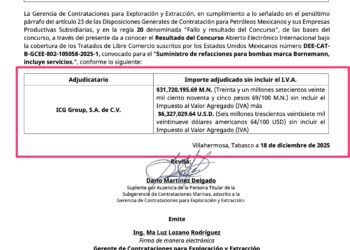 Denuncia al 9933989844 y [email protected]… Algo sorpresivo y amañado sucedió en el Acuerdo Referencial de Servicios de Operación con Equipos de Tubería Flexible y Aplicación de Gas Nitrógeno en los Pozos Petroleros en las Regiones Marinas del Golfo de México, impulsados por el corrupto RICARDO ORTEGA GALINDO, coordinador de Servicios Terrestres y de Perforación e Intervenciones a Pozos…