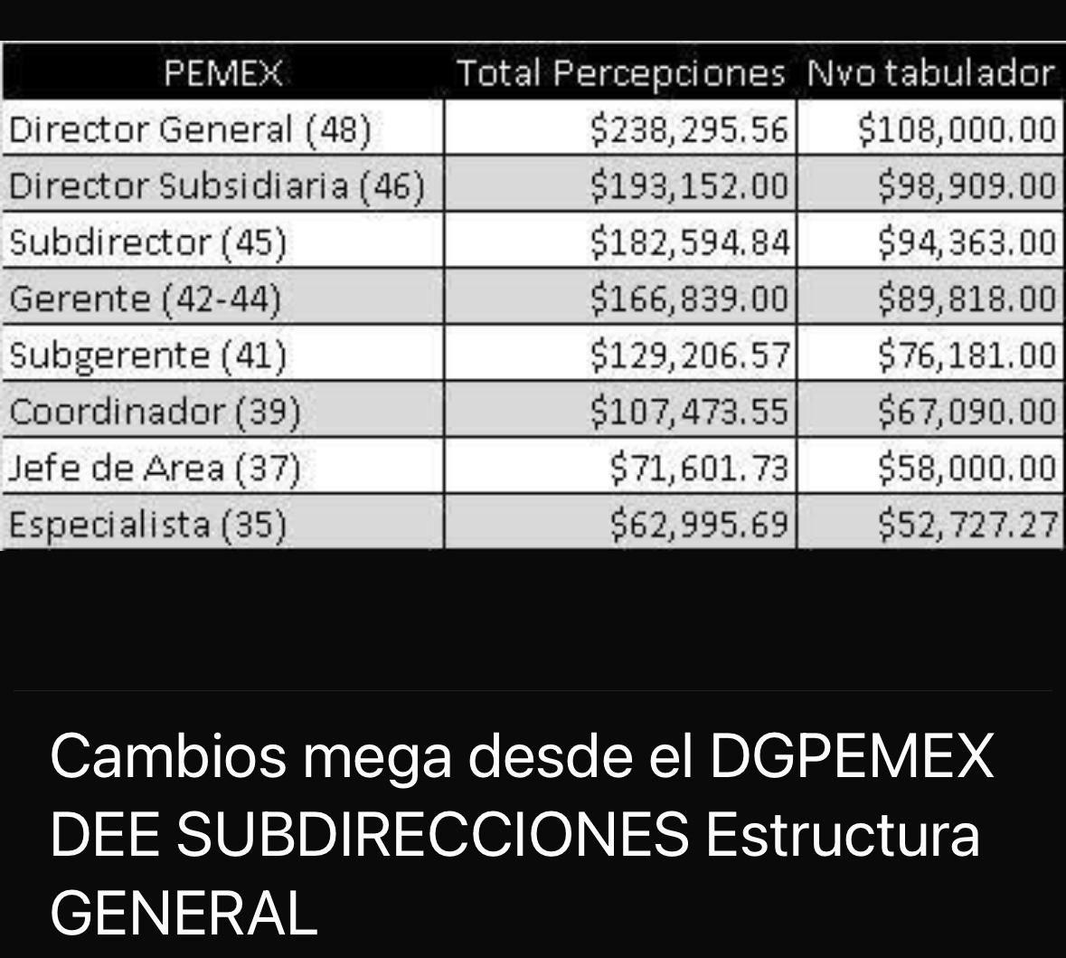 Denuncia al 9933989844… 🚩⚠️💸❗️¡PENSIONES DORADAS: Aplican descuentos del -54% a jubilados de Pemex! Trabajadores de @Pemex reportan que ya les comenzaron a aplicar -fast track- los descuentos en sus pensiones mensuales tras la aprobación de la reforma al Artículo 127 Constitucional enviado por la presidenta Claudia Sheinbaum Pardo para eliminar las llamadas “pensiones doradas”, pero que terminó afectando a los que menos perciben, señalan. Según la reforma constitucional publicada en el Diario Oficial de la Federación (DOF) el 10 de abril de 2026 pone fin a las pensiones doradas en México, limitando las jubilaciones de altos funcionarios públicos. La norma, vigente desde el 11 de abril de 2026, establece que ninguna pensión de servidores públicos de confianza podrá superar el 50% de la remuneración presidencial. Según una tabla -a priori- de percepciones por jubilación de puestos antes y después de la reforma así quedaron: 1.- Director General (N-48) antes percibía 238,295.56 pesos y ahora 108,000 pesos. 2.- Director Subsidiaria (N-46) antes percibía 193,152 pesos y ahora 98,909 pesos. 3.- Subdirector (N-45) antes 182,594.84 pesos y ahora 94,636 pesos. 4.- Gerente (N-42 al 44) antes 166,839 pesos y ahora 89,818 pesos. 5.- Subgerente (N-41) antes 129,206.57 y ahora 76,181 pesos. 6.- Coordinador (N-39) antes 107,473.55 y ahora 67,090 pesos. 7.- Jefe de Área (N-37) antes 71,601.73 pesos y ahora 58,000 pesos. Y 8.- Especialista (N-35) antes 62,995.69 pesos y ahora 52,727.27 pesos. Afectando desde el N-35 para arriba con porcentajes que van del -17% al -54%. Por lo mismo hoy hubo protestas a nivel nacional de trabajadores jubilados de @Pemex y @CFEmx en ciudades como Villahermosa, Tabasco; Guadalajara, Jalisco; a la que se sumó durante el día la manifestación de Monterrey, Nuevo León, donde anunciaron demandas. Atención @Claudiashein @MarcelaVilleg15 @CNE_Mex @SENER_mx @GobiernoMX @FGRmexico @LuzElena_GE @ASF_Mexico @SCJN @STPS_mx @Tu_IMSS @SEMARNAT_mx @agencia_asea @CENAGAS_mx @IMPetroleo @SATMX @Hacienda_Mexico @BuenGobierno_mx @Centrofcrl #OIC #UIF #OmarReyesColmenares …Zas!!!